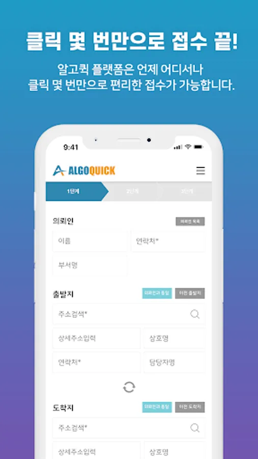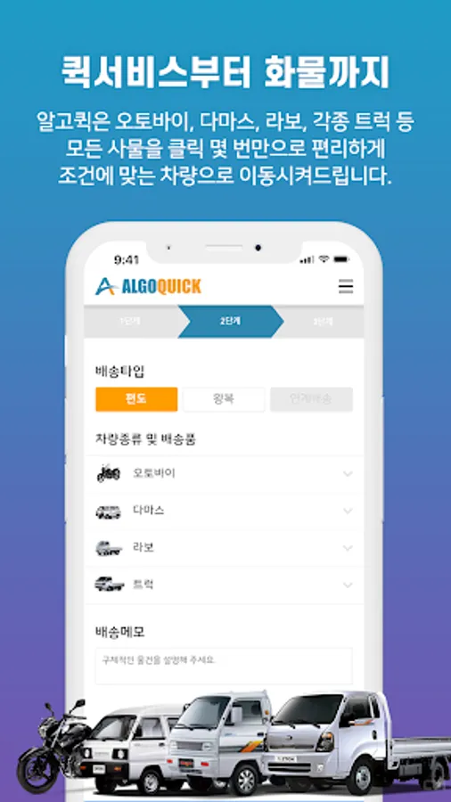 Algoquick, an online quick service platform, provides a new digital logistics experience through the web and app by reconstructing the process of using on-demand freight transportation such as quick service and delivery freight based on IT technology.
