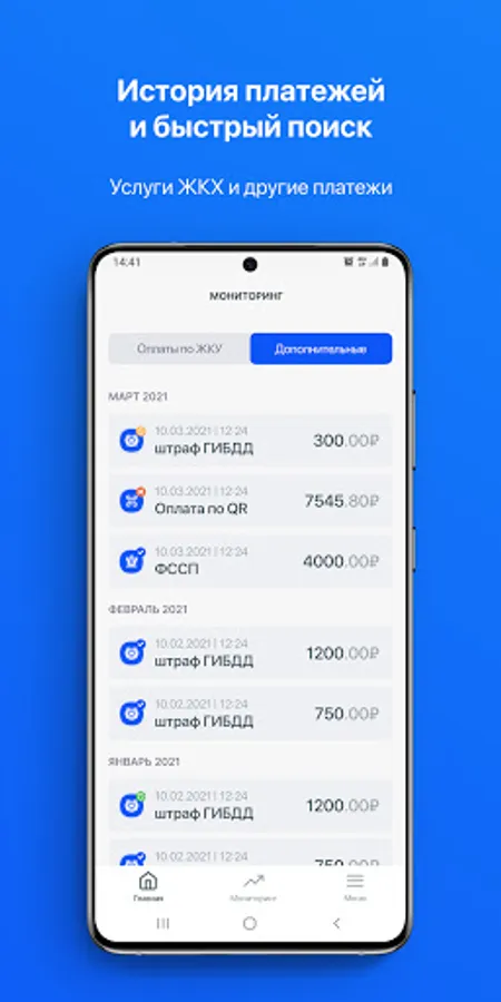 The "Thrifty Citizen" application is a saving of your time when paying for utility bills, traffic police fines and executive documents.