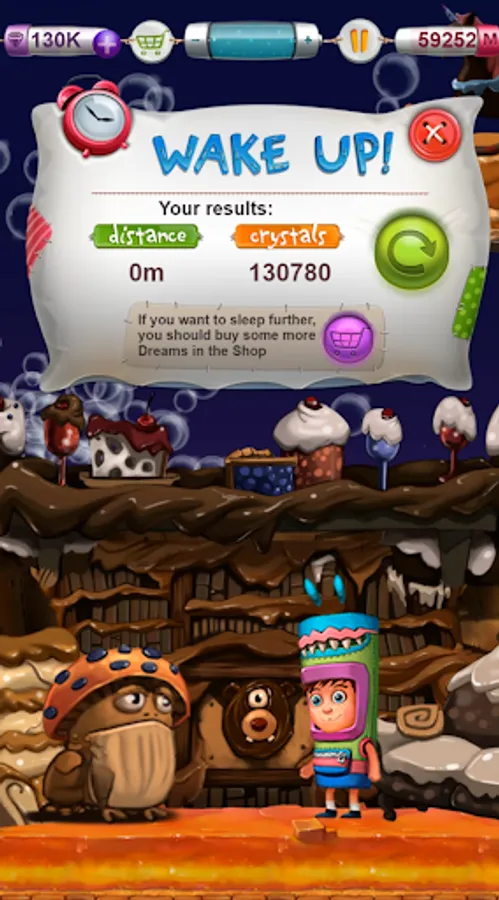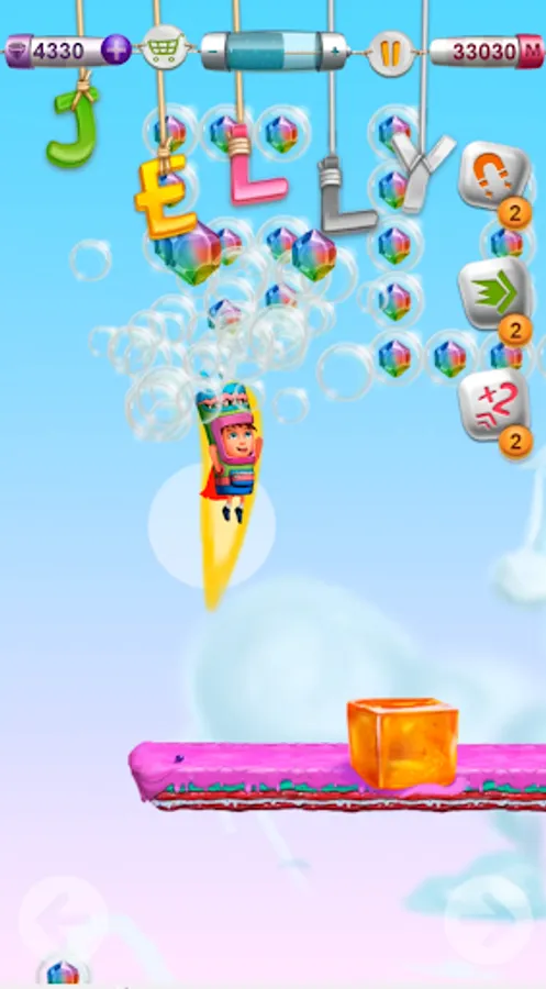 Beware of cute sleepy monsters - they can interrupt your sweet journey! And if possible, jump on top of them - this action will continue your flight as well as jelly!