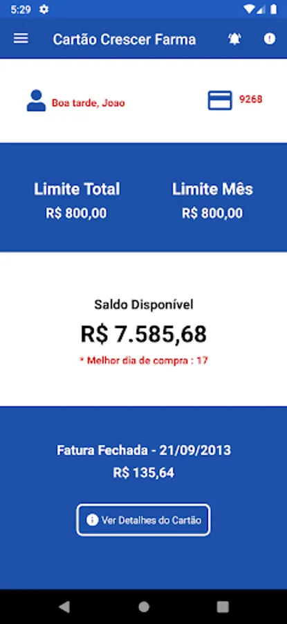 With the "Cartão Crescer Farma" application, all customers will be able to access invoices, launches and points of their cards, with all practicality and convenience.