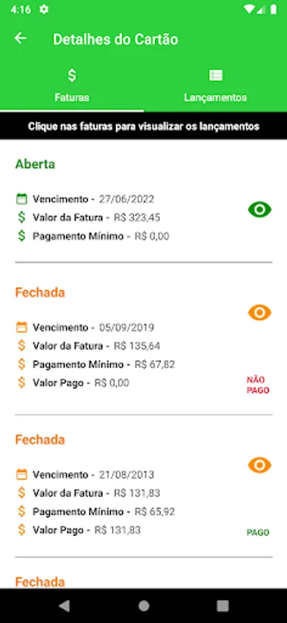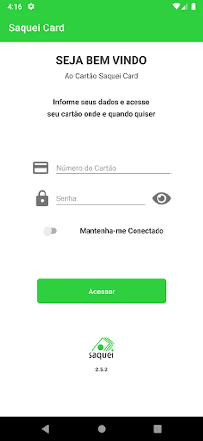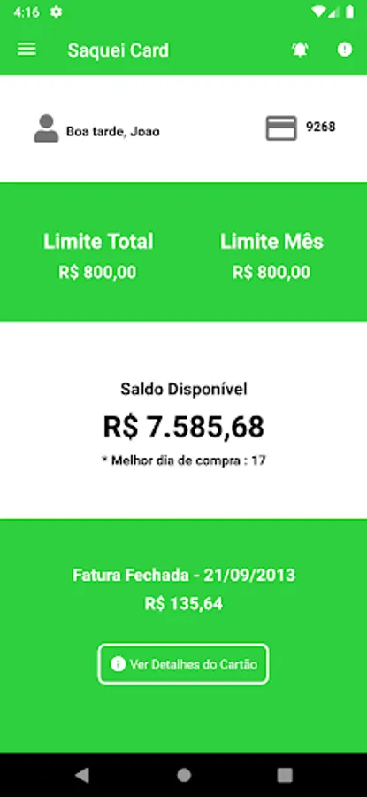 With the "Cartão Saquei Card" application, all customers will be able to access invoices, launches and points of their cards, with all practicality and convenience.
