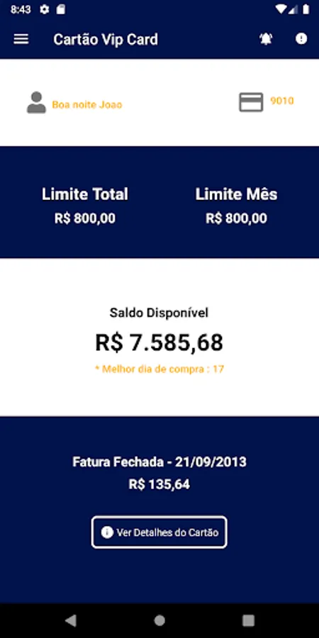 With the application "Cartão Vip Card", all customers will be able to access invoices, releases and points of their cards, with all practicality and convenience.
