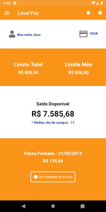 With the "Cartão Level Pay" application, all customers will be able to access invoices, releases and points of their cards, with all practicality and convenience.