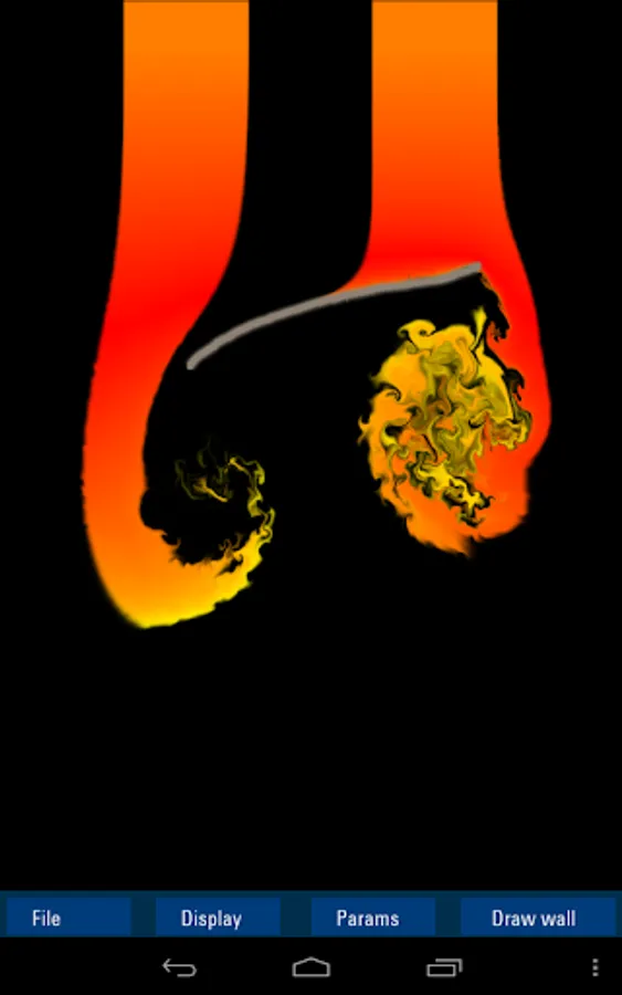 • Switch between two simulation modes: wind tunnel or “free” mode where fluid wraps around screen.