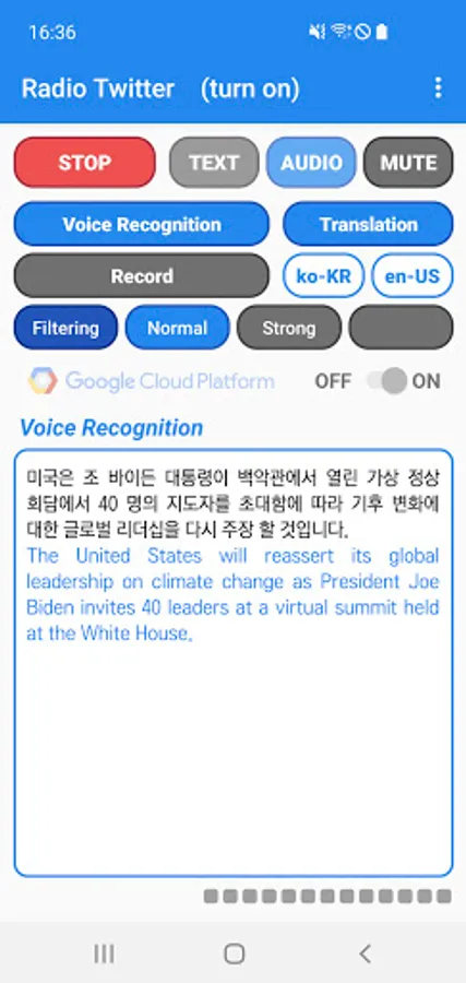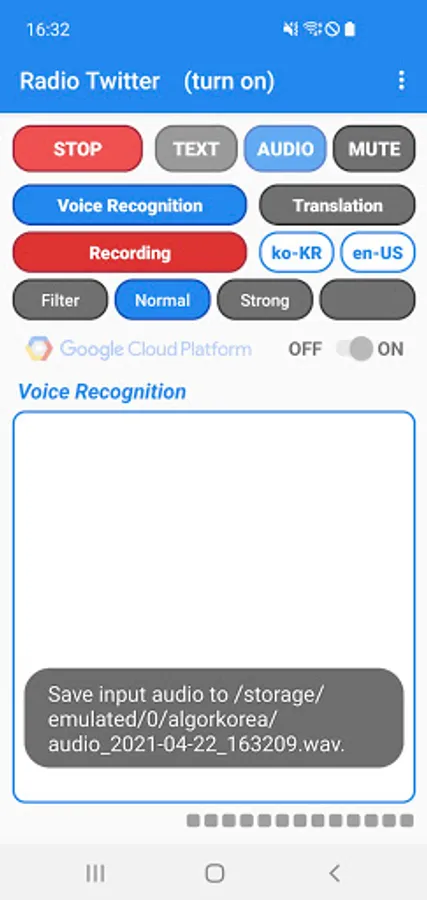 Voice recognition and translation can use Google Cloud Platform API. (However, users need to sign up for service with Google)