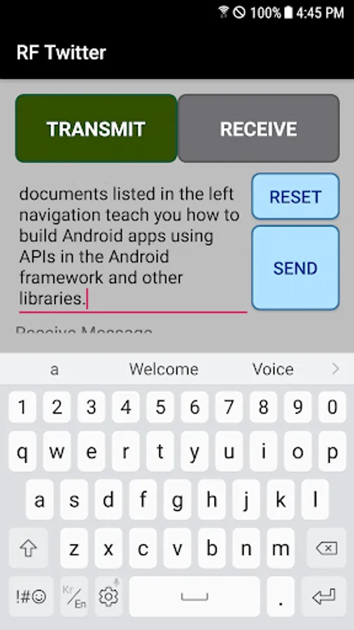 Transmit text messages from one smartphone to another wirelessly through the ZULU dongle, connected to the smartphone through an OTG cable.