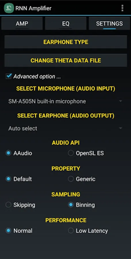 On Android versions lower than 8.1, [Settings > Advanced option > Audio API] is automatically selected as 'OpenSL ES'. The things to remember in 'OpenSL ES' mode are as follows: