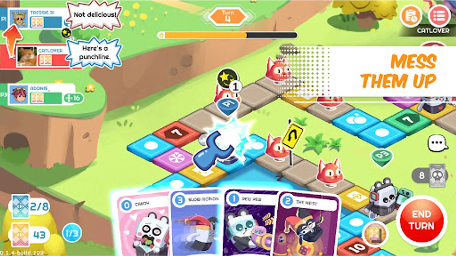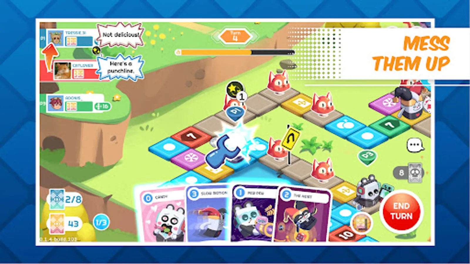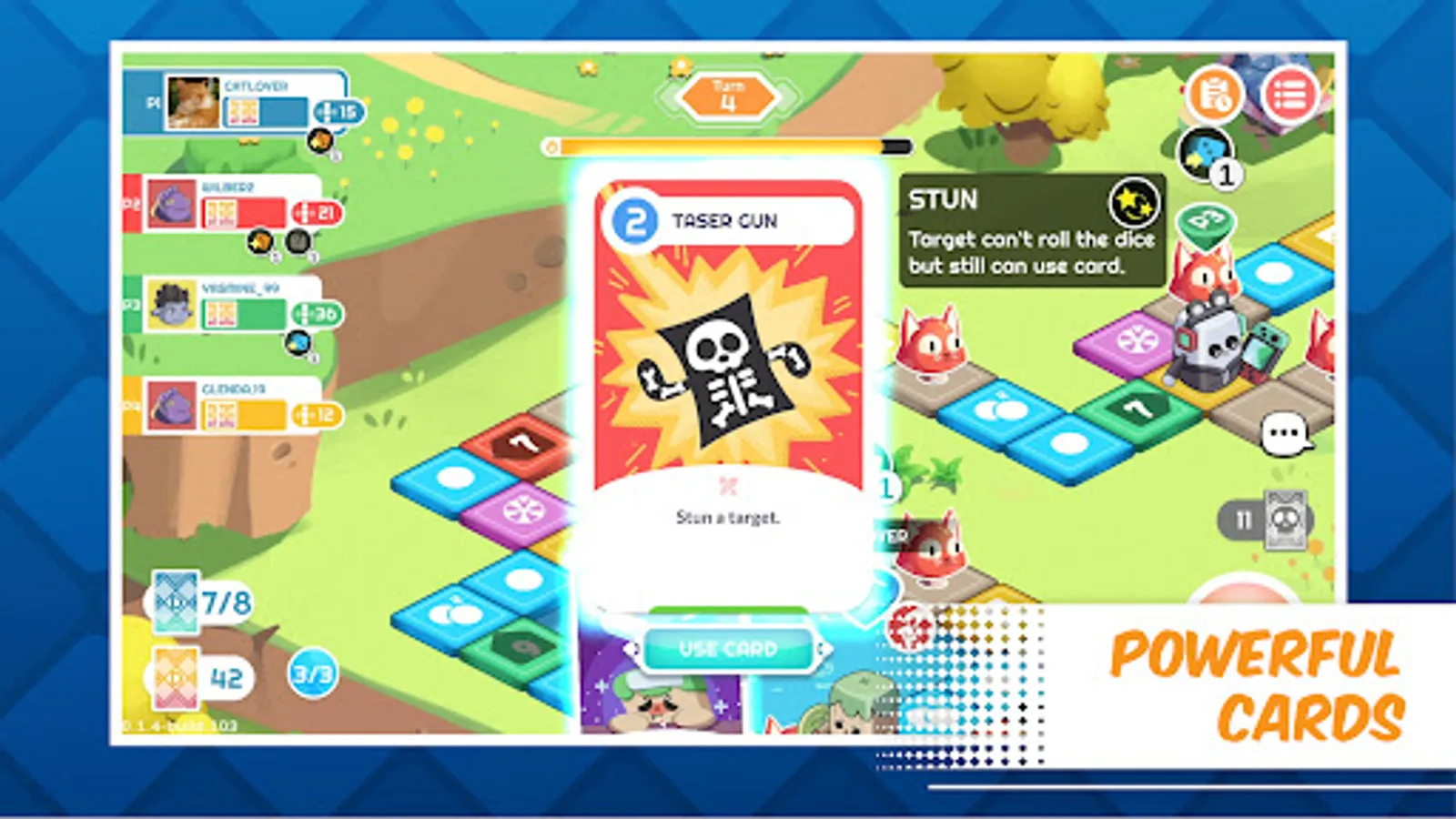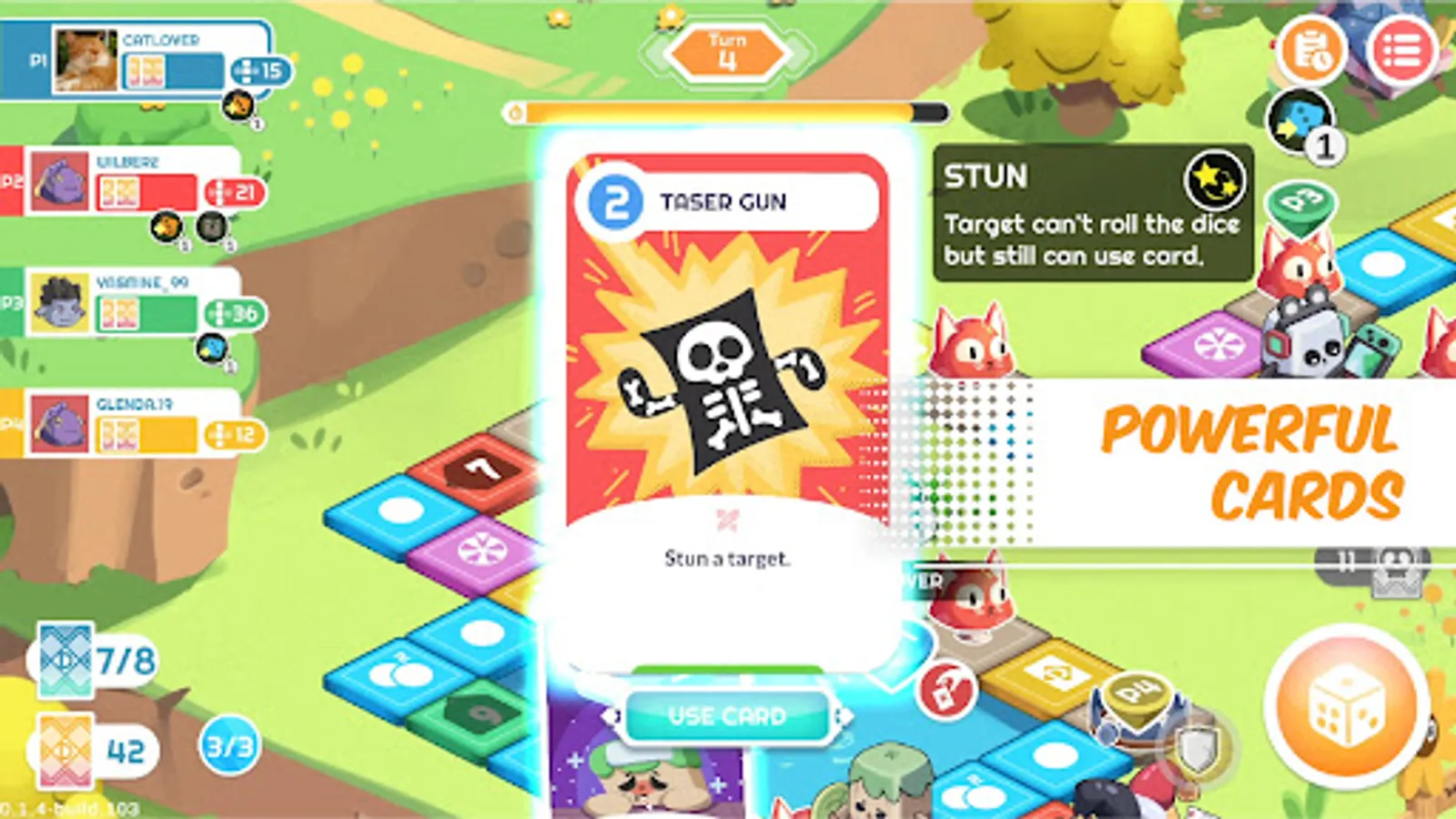 Change the course of the game with various skill cards. Push your enemy to their demise. Set your own trap and give your friend the last laugh. Really, don't be nice while playing this game.