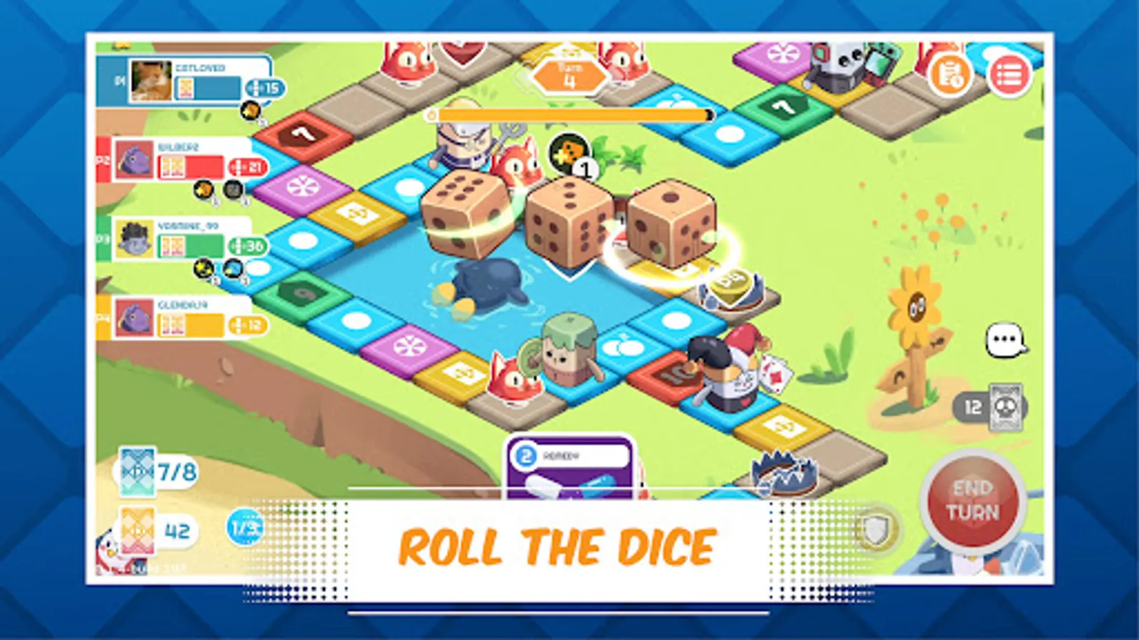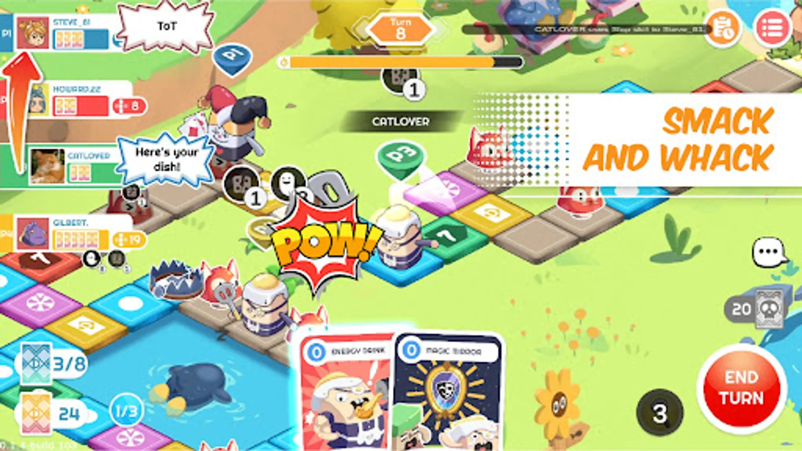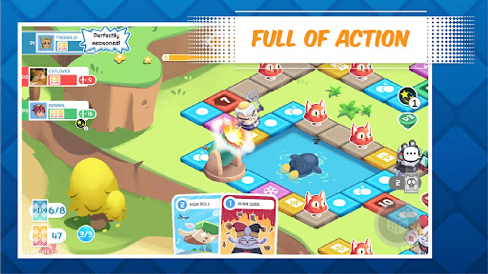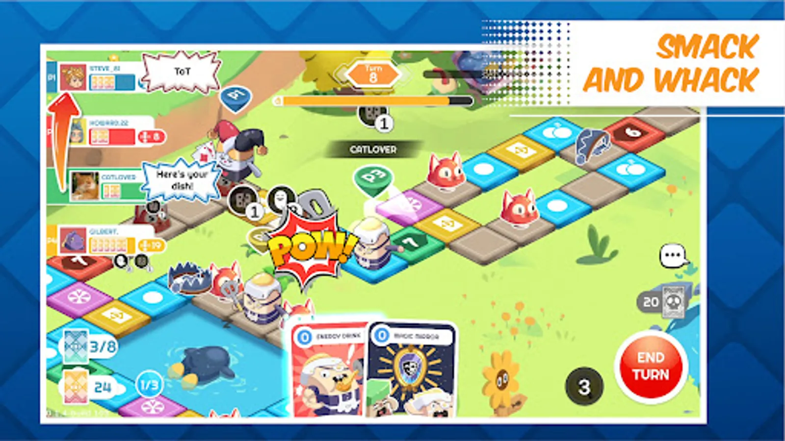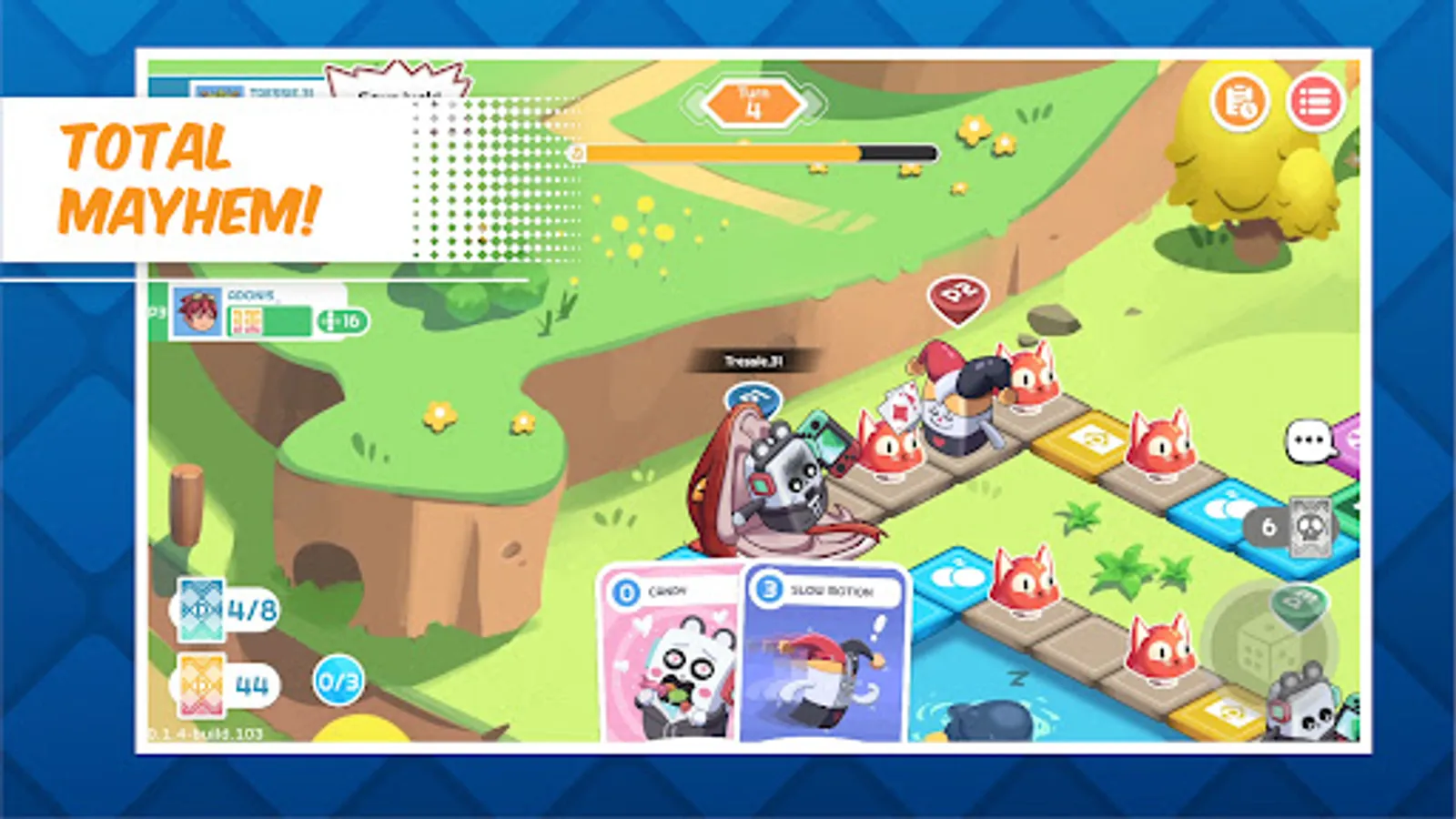 Change the course of the game with various skill cards. Push your enemy to their demise. Set your own trap and give your friend the last laugh. Really, don't be nice while playing this game.