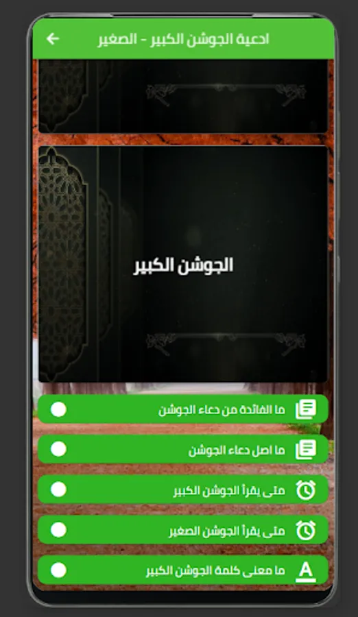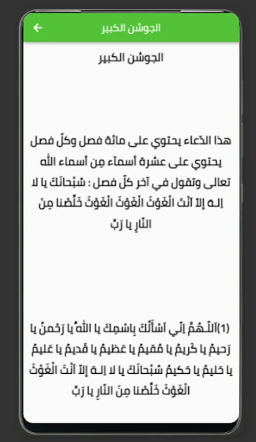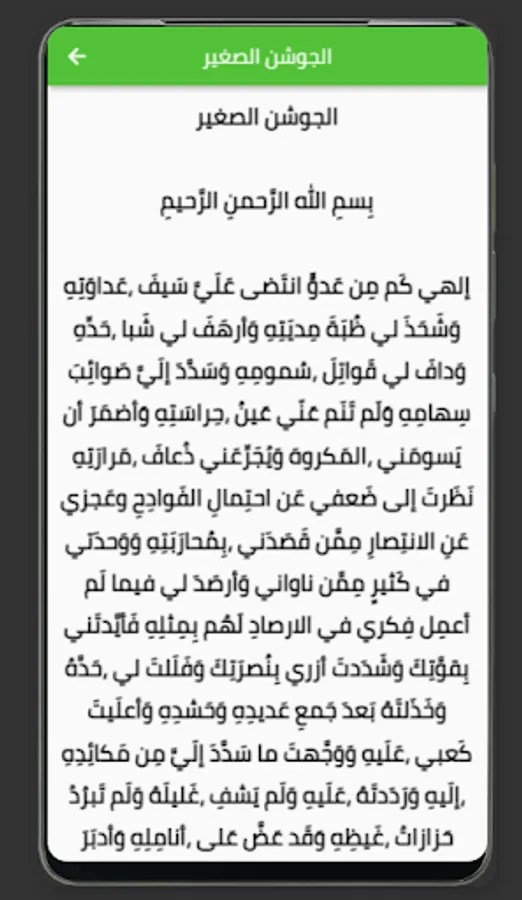 The application of supplications of Al-Jawshan Al-Kabir - Al-Saghir is an application that contains a collection of supplications and prayers contained in Al-Jawshan Al-Kabir and Al-Jawshan Al-Saghir that have been used by Muslims for more than a century. The application allows users to view supplications in an easy and smooth way, which helps them to recite them and focus while praying.