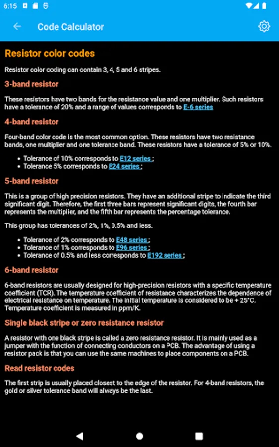 The Application checks the entered value against E-series E6, E12, E24, E48, E96, E192, depending on the accuracy.