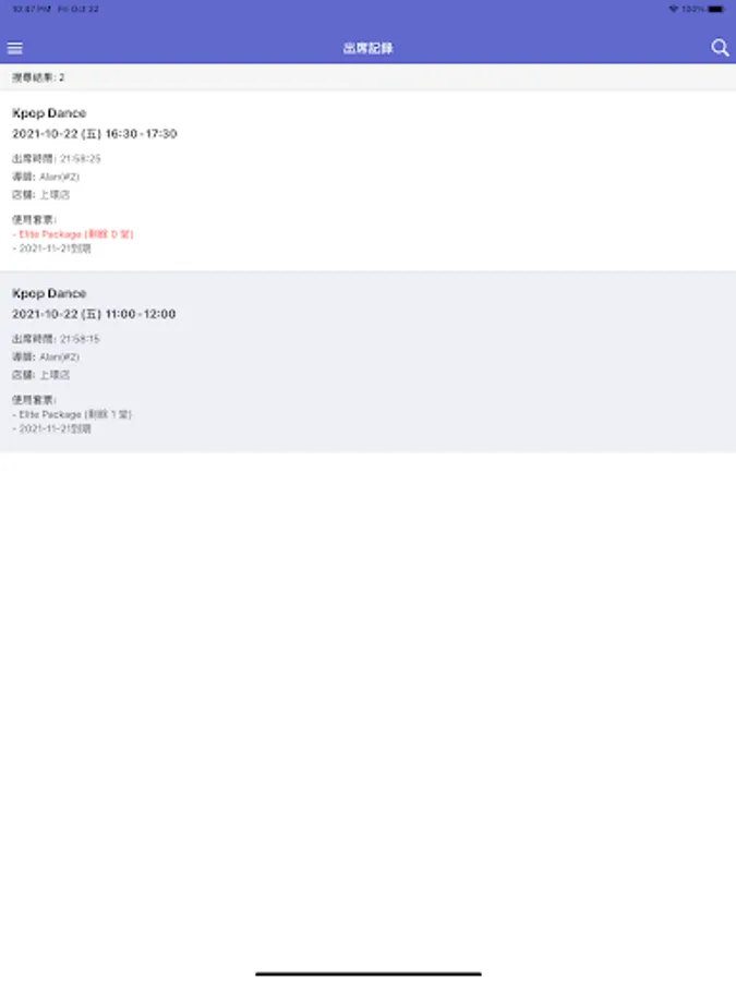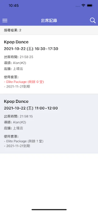 Battalion (ELITE) app provides members with real-time news information, package history, attendance history, timetable, and course/package prices. Members can create profile in the app.