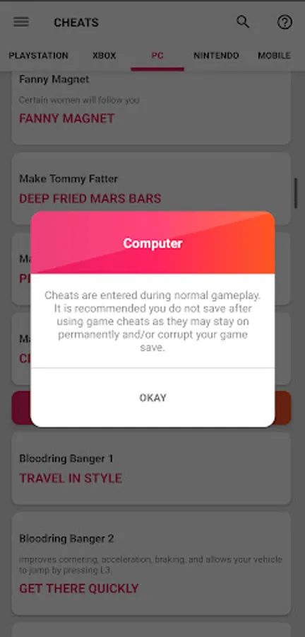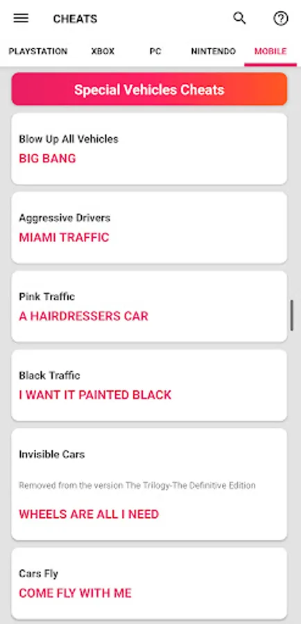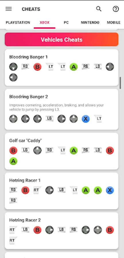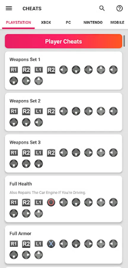 ✔️ You can quickly switch between pages , to show cheats in PS2 , PS3 , PS4 , PS5 , XBOX ONE , XBOX 360 , Computer , Nintendo , Mobile.