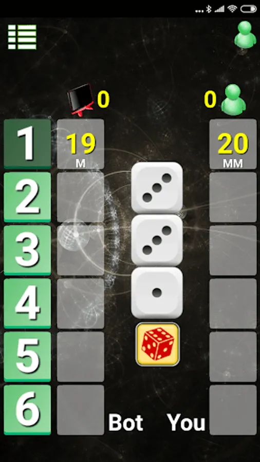Bunco is played using 3 six-sided dice for six rounds. Players earn points by rolling 3 dice in each round. Each round has a target number to roll (same as the round number) and players earn 1 point for each target number rolled.