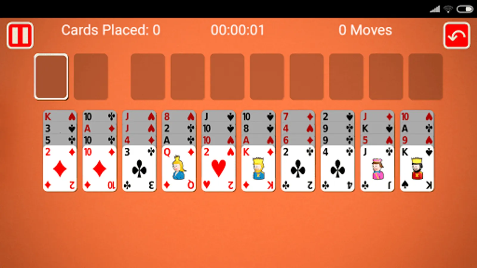 At the beginning 10 tableau piles are dealt 4 cards each face-up and remaining cards are set aside to form a stock pile. Foundations are build up by suit from Ace to King.