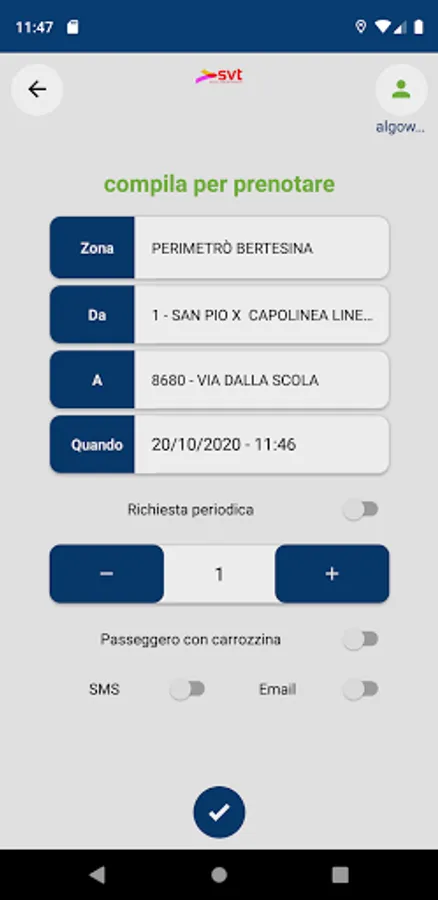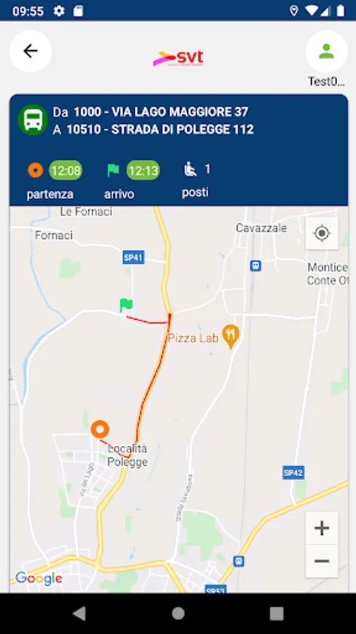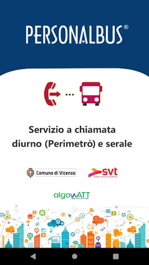 This application allows you to register within the SVT information systems in order to subsequently be able to access the on-call transport services called Perimeter and Evening. After registration, it is possible to book one or more trips within one of the geographical areas in which the service is distributed throughout the territory of the municipality of Vicenza. It is possible to book for a single trip or for multiple trips repeated over time by specifying your travel needs. It is therefore necessary to select the area of interest, the desired ascent and descent stop and the desired ascent or descent time (not both). Optionally, a number of seats greater than one can be specified to make a single booking for several people traveling together. Furthermore, it is possible to indicate the need to travel with your own wheelchair in case of disability. Stops can be chosen from a list or selected on a map. The application then allows you to check the status of your travel bookings to see if they have been processed by the SVT central system, if they have been fulfilled and how. Furthermore, since it is a personalized transport service that is created according to the requests of the users, it is required to be a diligent part and cancel your travel request if it is no longer necessary. Canceling a travel request can also be done via the app. In case of need, to get support on the use of the service, you can call the number listed within the application itself.