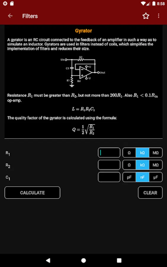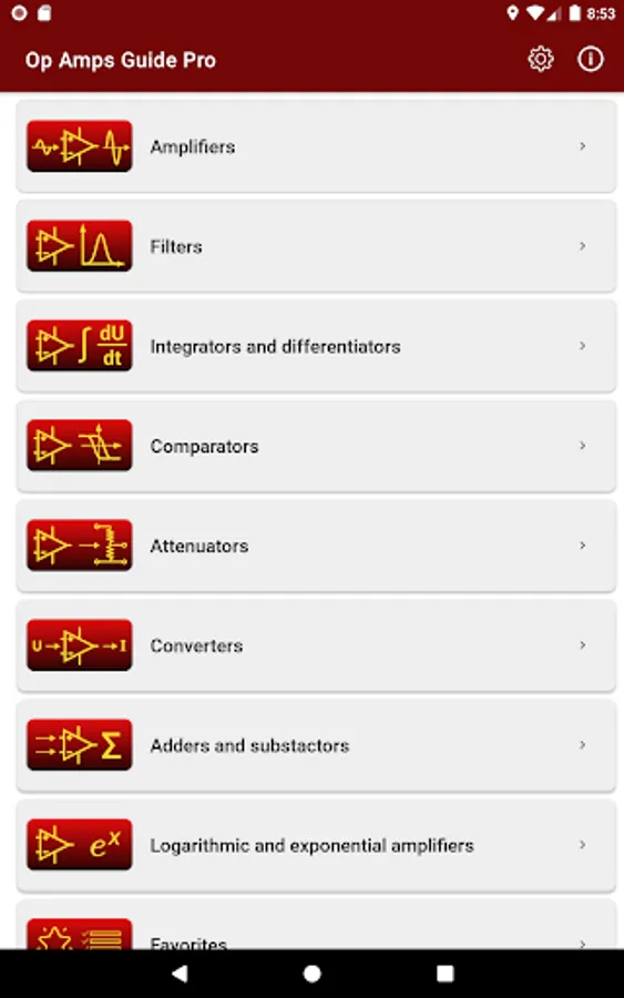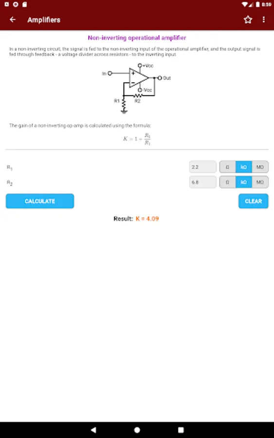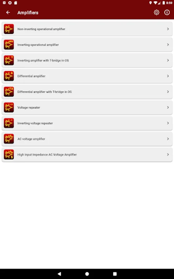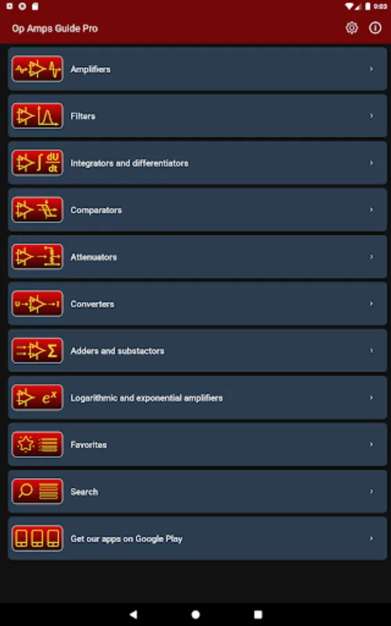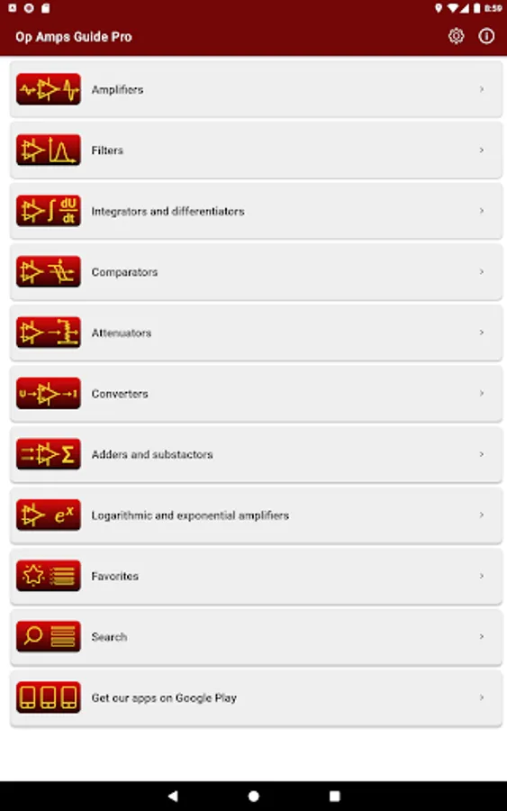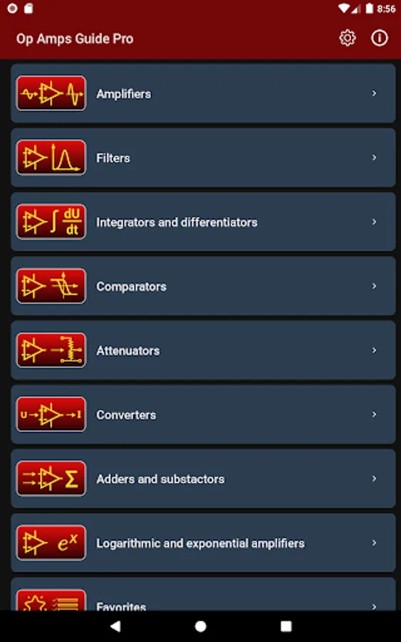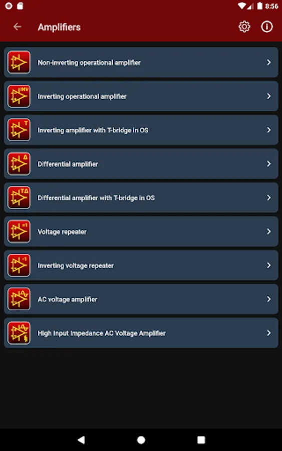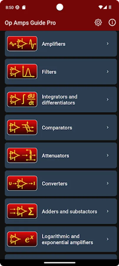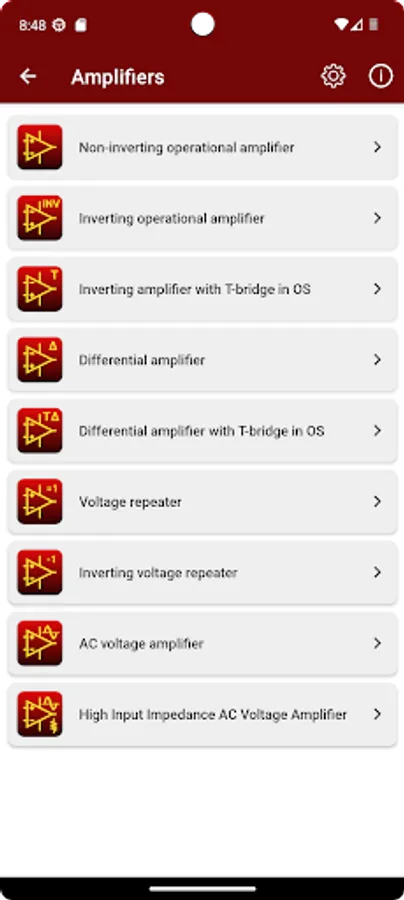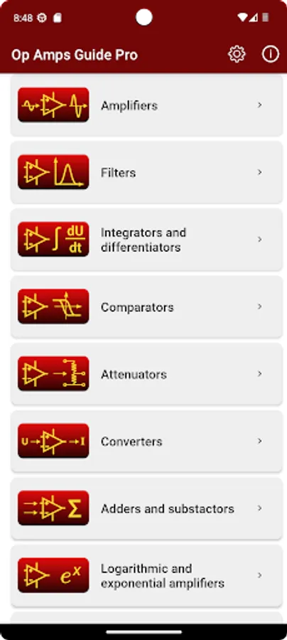 This is an application for the design and calculation of electronic circuits using operational amplifiers.