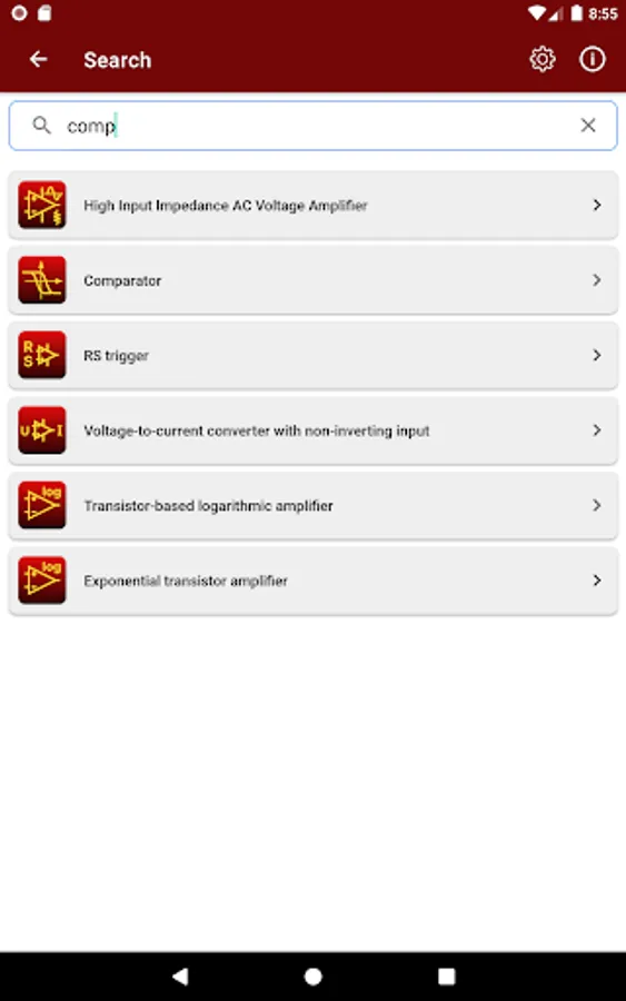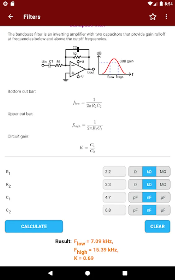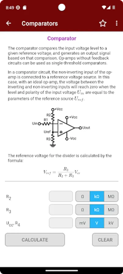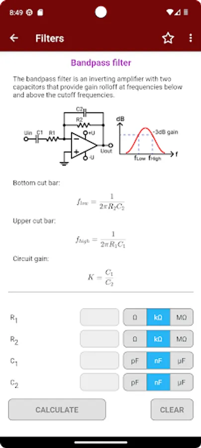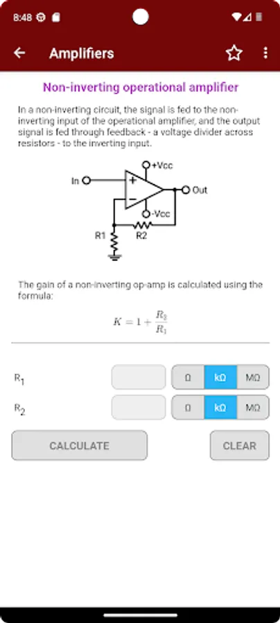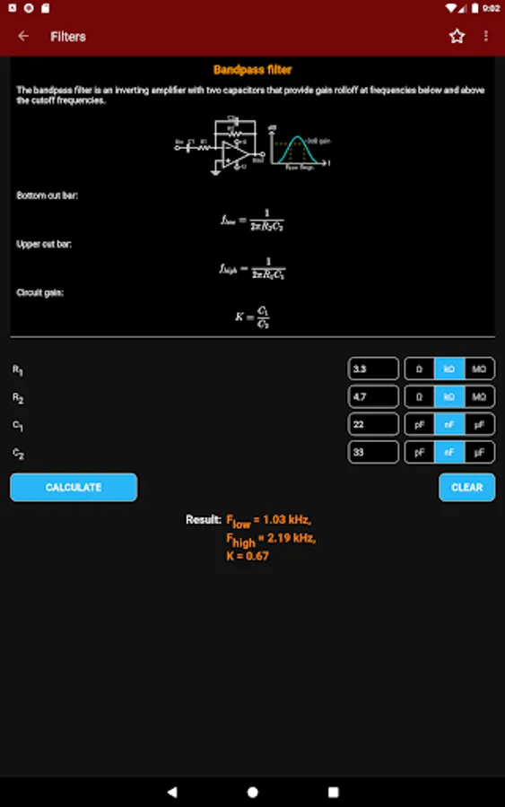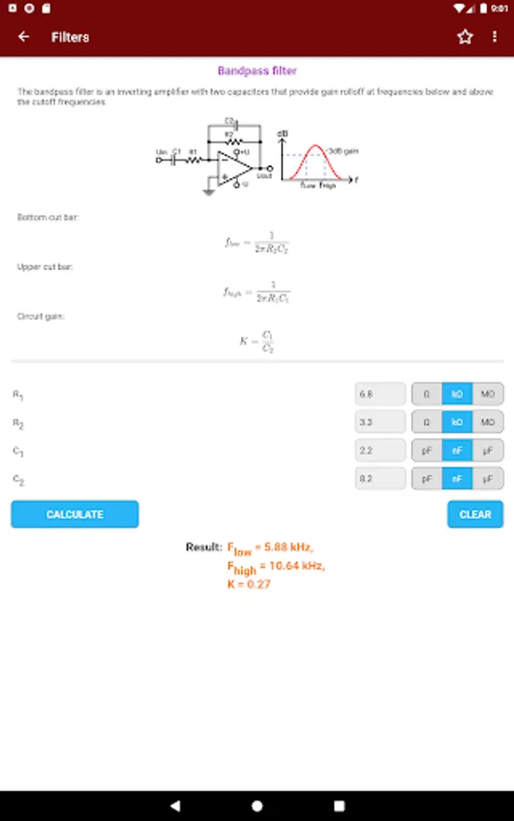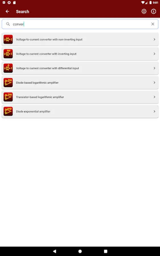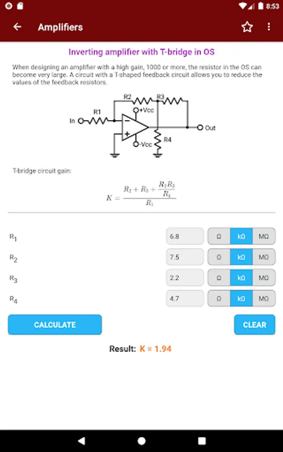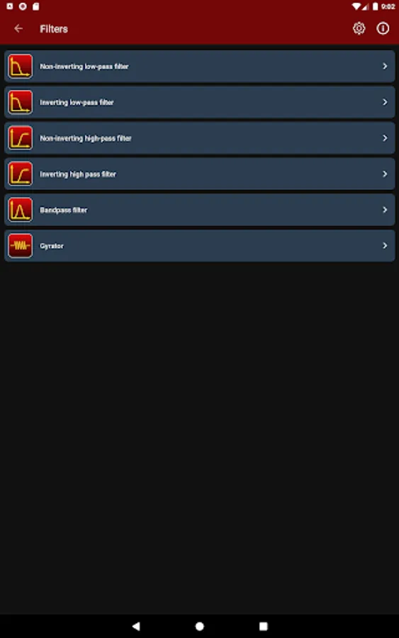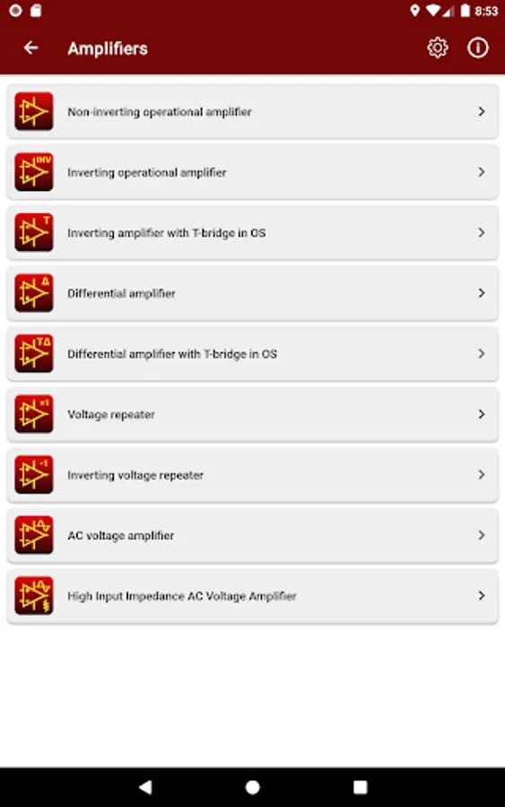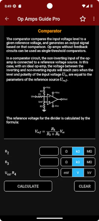 This is an application for the design and calculation of electronic circuits using operational amplifiers.