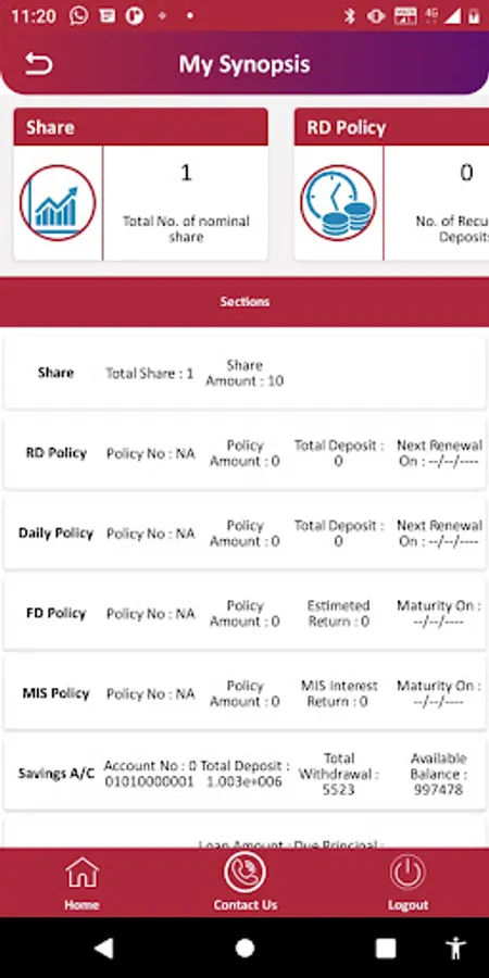 Through this option Members can view their own policy, loan and savings account statement through their mobile application.
