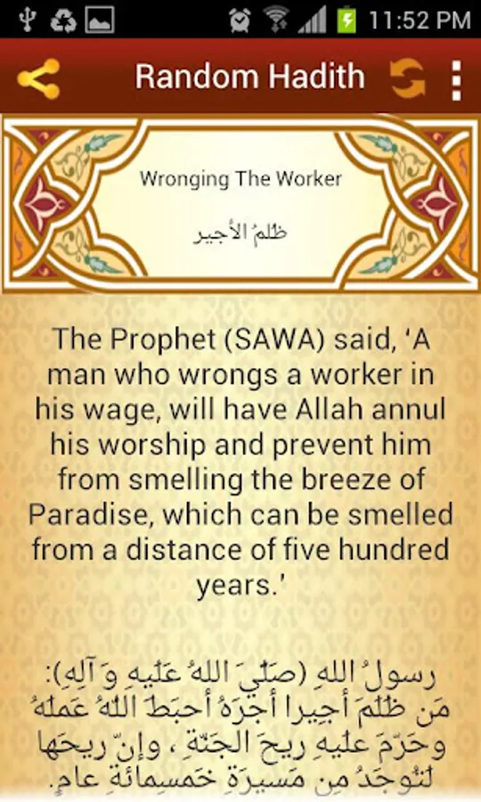 3. Ability to share hadiths through text messaging, email, pasteboard copying.