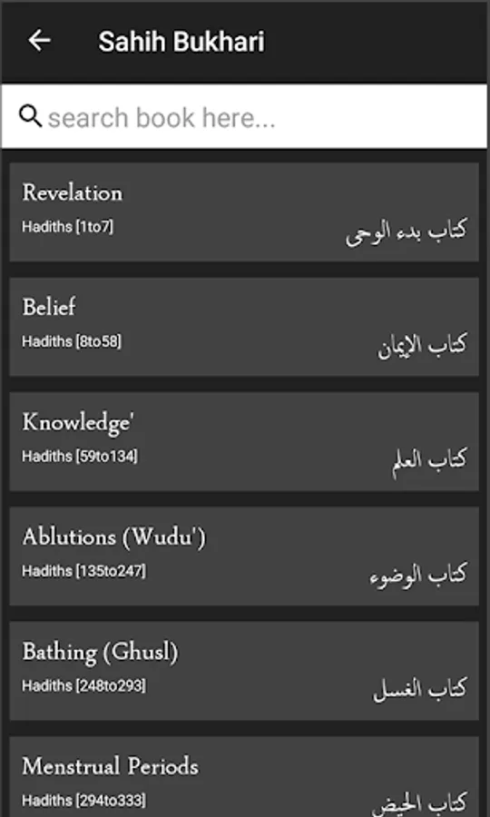 2) Sahih Muslim صحيح مسلم - THe Book of Sahih Al-Muslim is also included in this app, you can find it easily, Sahih Muslim all the Hadith collected by Muslim b. al-Hajjaj (d. 261 A.H., 875 C.E.)