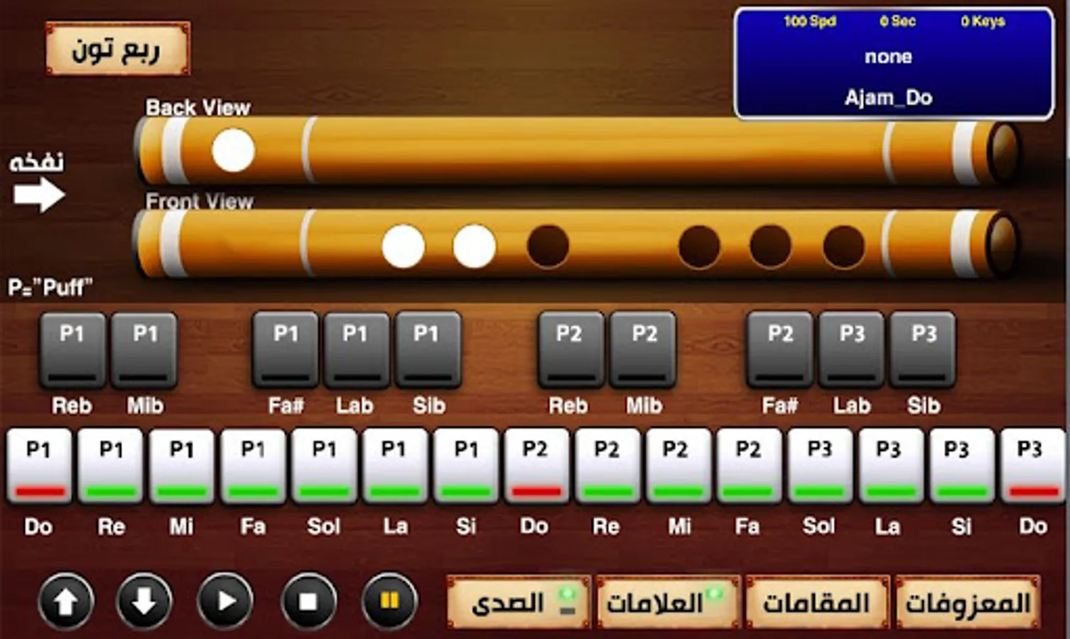 The sound of the flute is characterized by sweetness and romance, it is used in various styles of traditional and contemporary Arabic music. The flute is played by placing the mouth on the upper hole and blowing air into it, while the other holes are covered and opened with the fingers of the hands to generate a variety of musical notes and pitches.