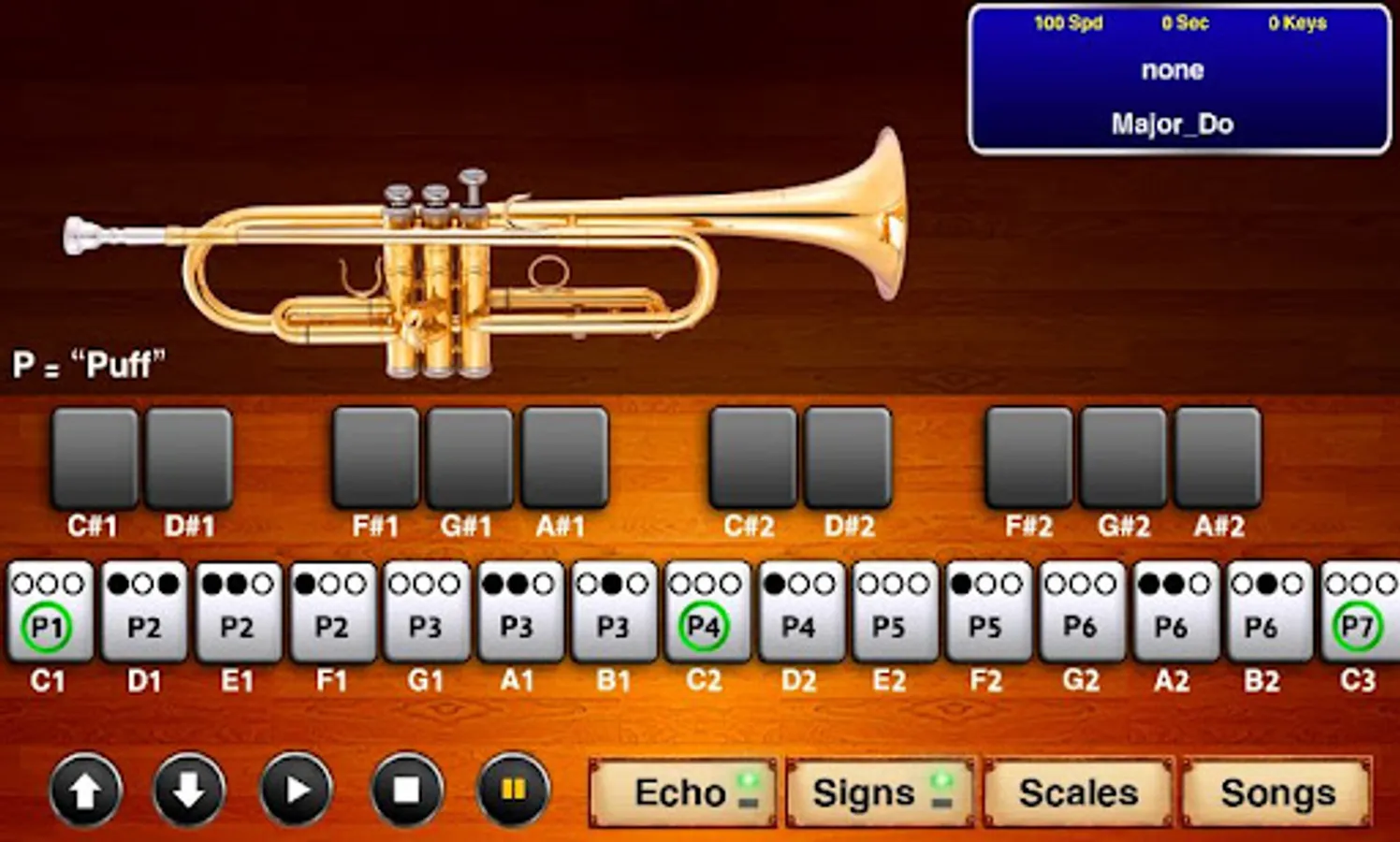 Trumpet Simulator is an innovative application designed to teach and enhance trumpet playing skills. With its user-friendly interface, the app provides a virtual platform for learning and practicing the beautiful art of playing the trumpet. The app features a variety of trumpet scales, meticulously drawn on the device's screen, allowing users to visualize and practice different musical scales effortlessly.