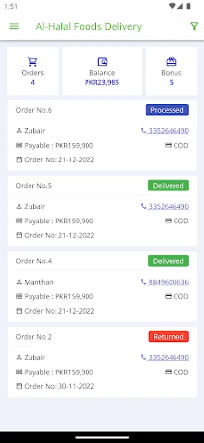 The app is used by the delivery boys of Al-Halal Foods Industry, by using this app the delivery boys can keep track of orders and money collected.