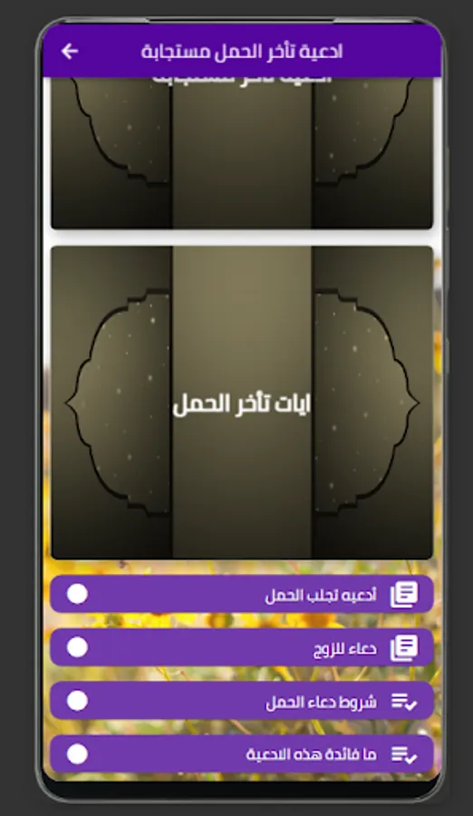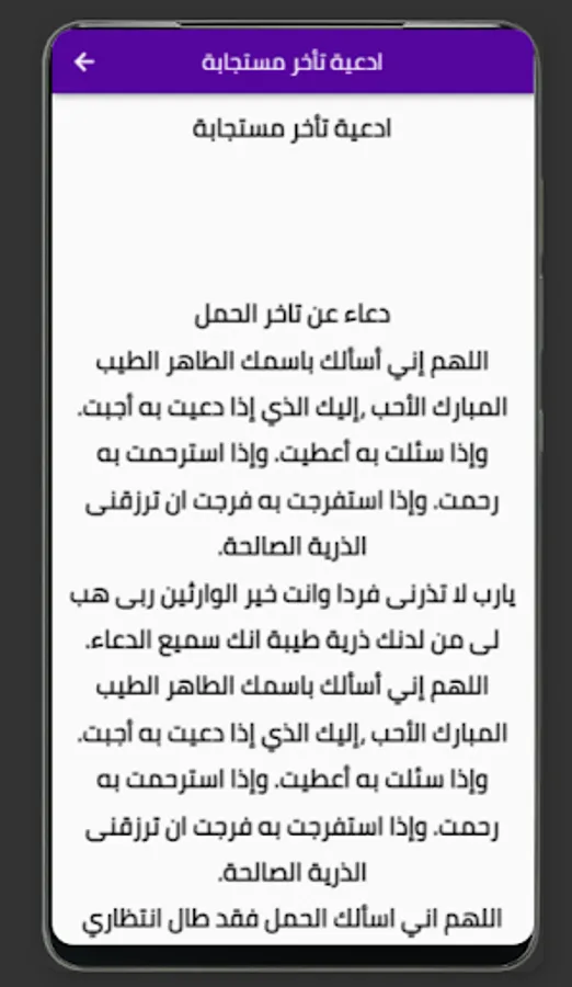 "Prayers for delayed pregnancy answered" is an application specially designed for women who want to get pregnant and this has not been achieved so far. The application contains a collection of supplications and supplications that users can read and listen to anytime and anywhere. These supplications have been collected from the Qur'an and Sunnah and have proven effective in helping many women achieve pregnancy.