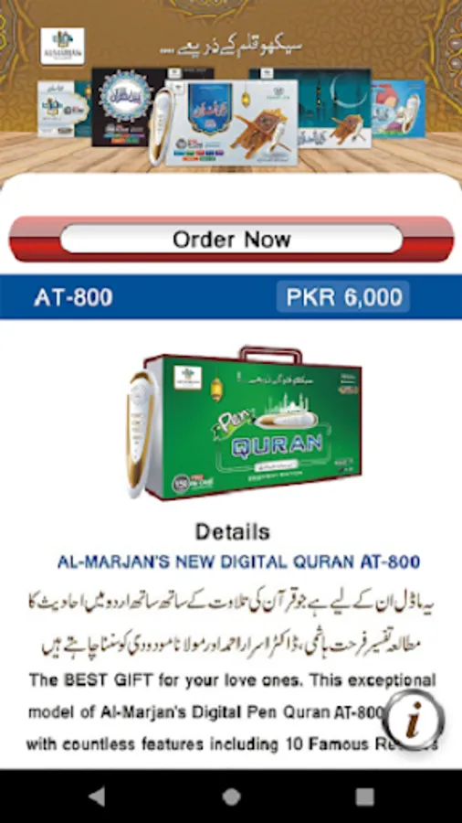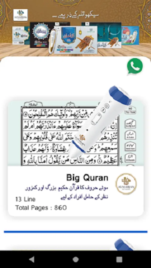 Al Marjan has a large collection of books & cards on Ahadees, Seerat un Nabi, Seerat-e Sahabiat & Quranic stories; lectures of various scholars, Masnoon Duas and lots of other information. All this information is in audio available at the touch of the pen.
