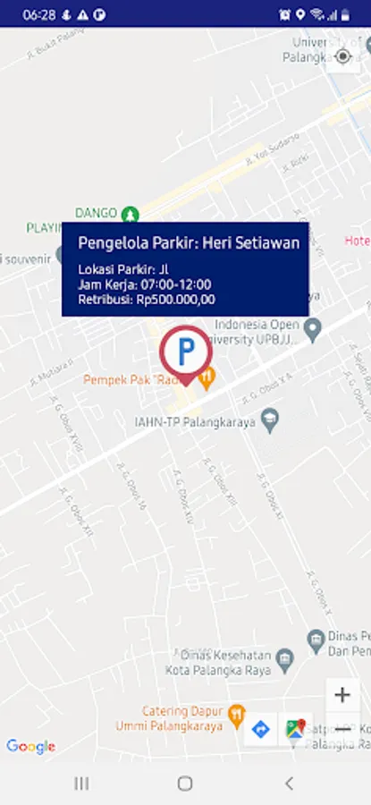 This application is used to find out the legal parking location officially registered at the Department of Transportation of the City of Palangka Raya.