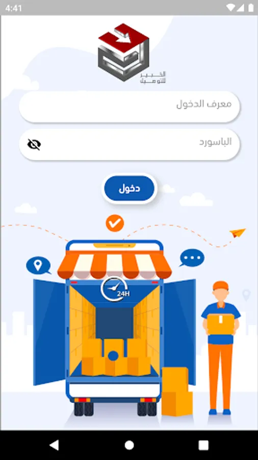 التطبيق الخاص بعميل الخبير للتوصيل بامكان العميل انشاء شحنات ومتابعتها وتواصل مع الدعم الفني وبحث عن كافة الشحنات بكل سهولة من خلال التطبيق