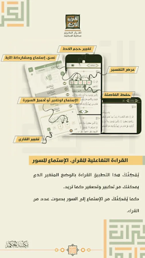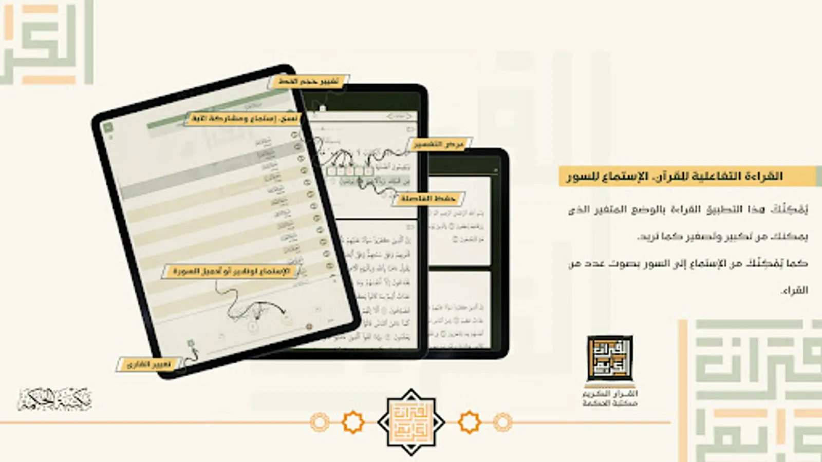 The Holy Quran application sponsored by "Al-Hikma Library".