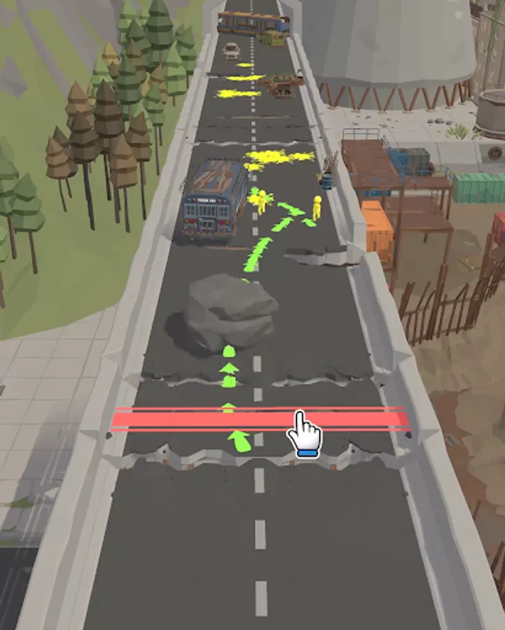 In Draw War, the goal is to stop your enemy army from reaching the redline, which is your base. You have to draw lines to create a path for vehicles, cranes and rocks to crush your enemy before they get to your base. If they get to your base, you have lost.