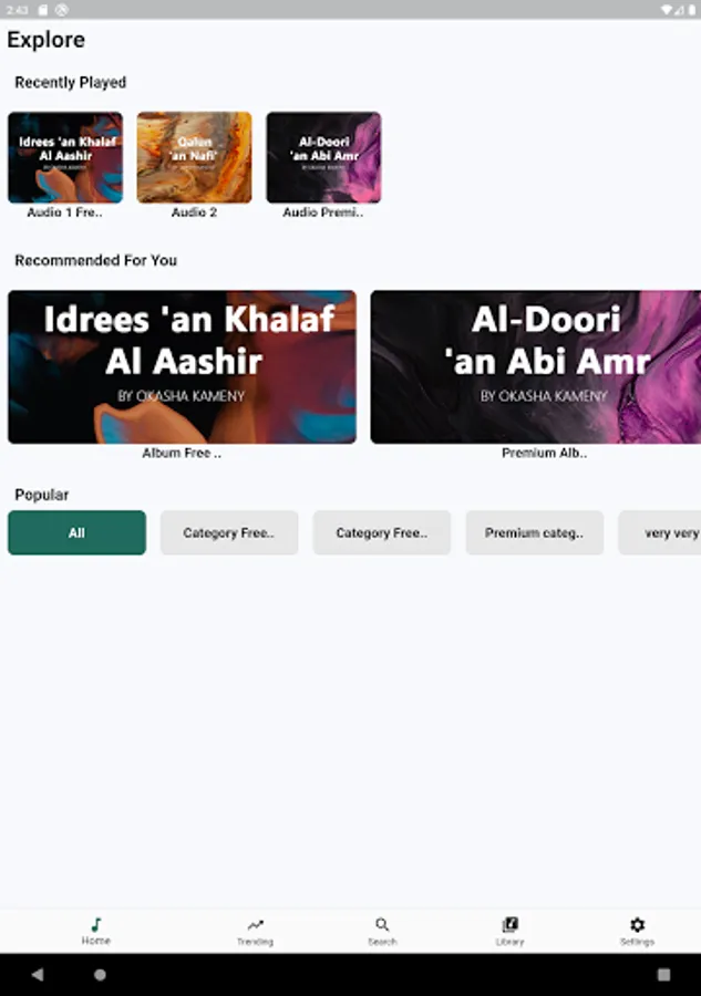 You will be able to listen to free and premium audio contents. The premium version will be available soon in shaa Allaah.