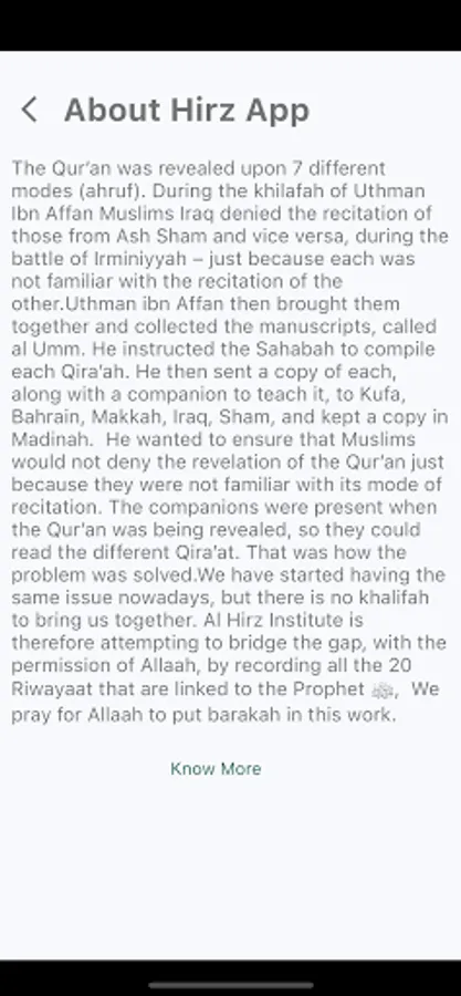 Hirz App is all about preserving the different modes of Qu'ran recitation, all linked to the Prophet.
