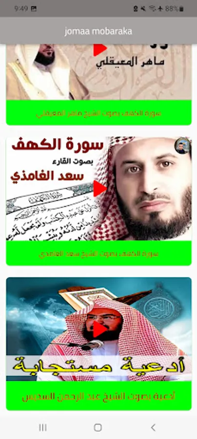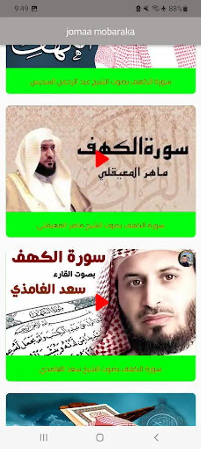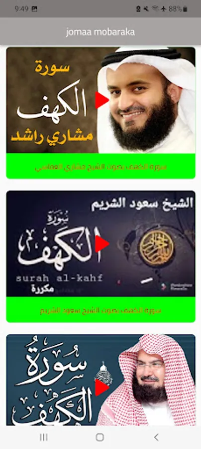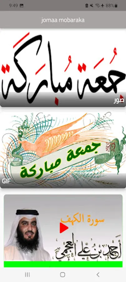 The application of Friday and what to do on this day, there are many pictures and videos that can be gifted and shared with family and friends, and there is also Surat Al-Kahf with several voices from the beloved sheikhs with beautiful voices.