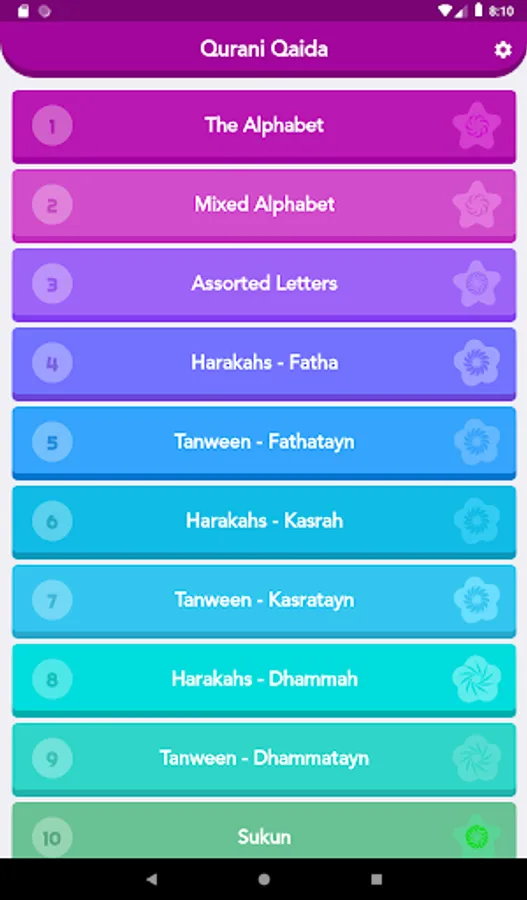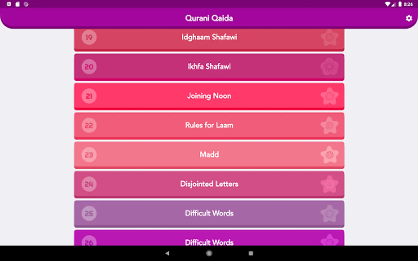 The app is based on ‘Qurani Qaida’; a starter book for beginners who start learning the Qur’an correctly; published by Darussalam.