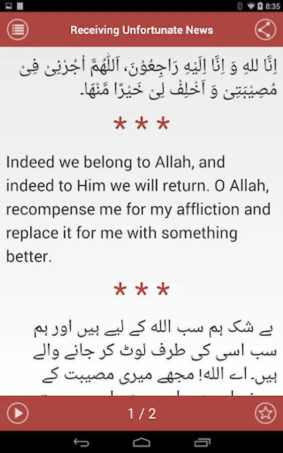 This easy to use FREE application is in Arabic - Urdu and Arabic - English.