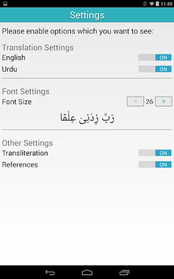 - Adjustable font size
