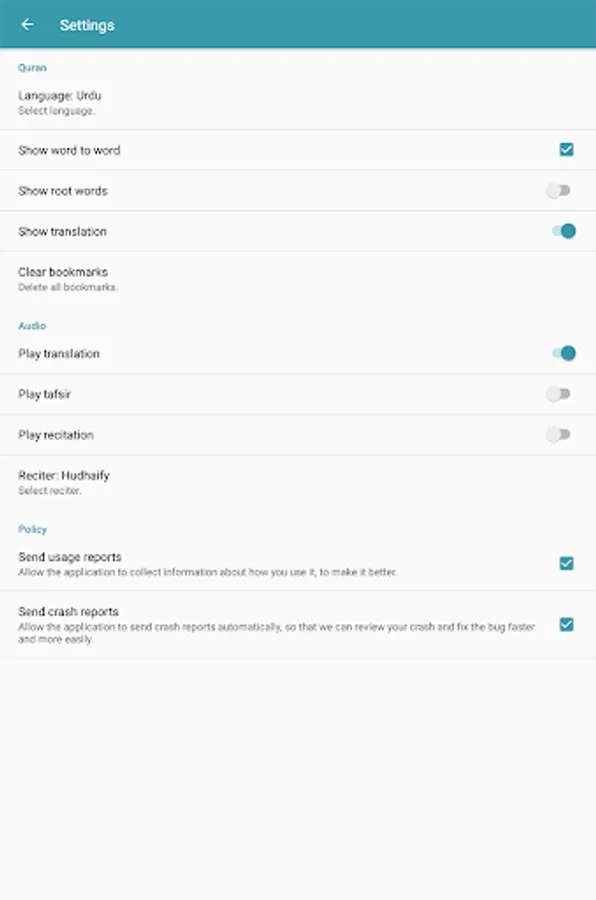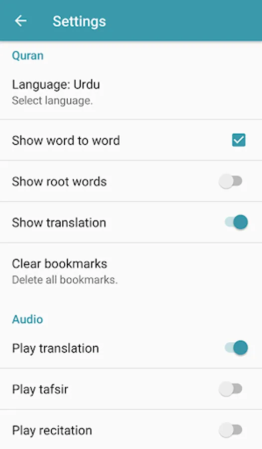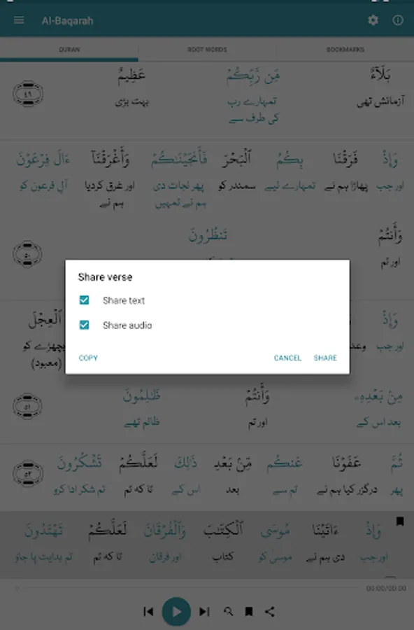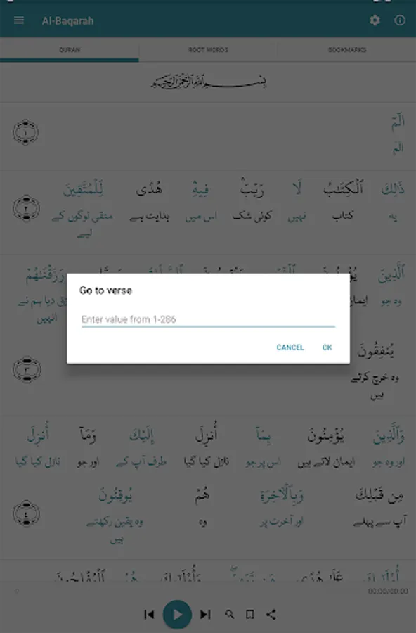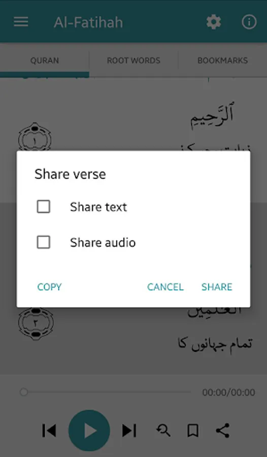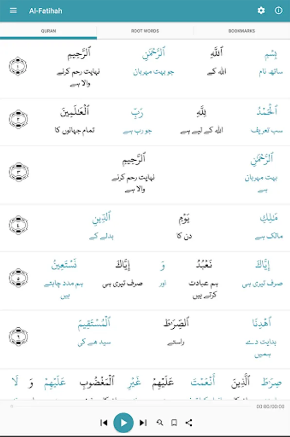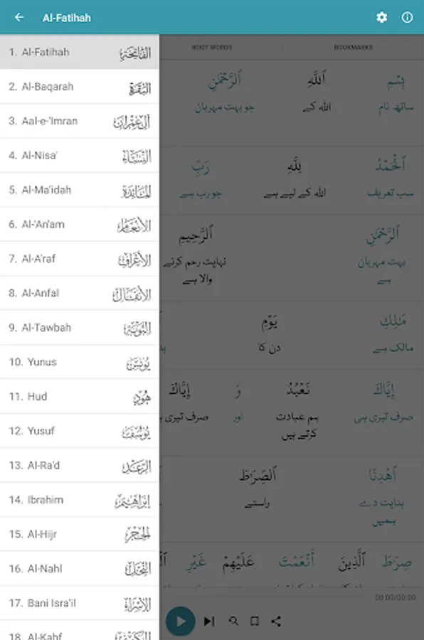 § Tap on any verse and press play button to listen to its audio translation, tafsir or recitation