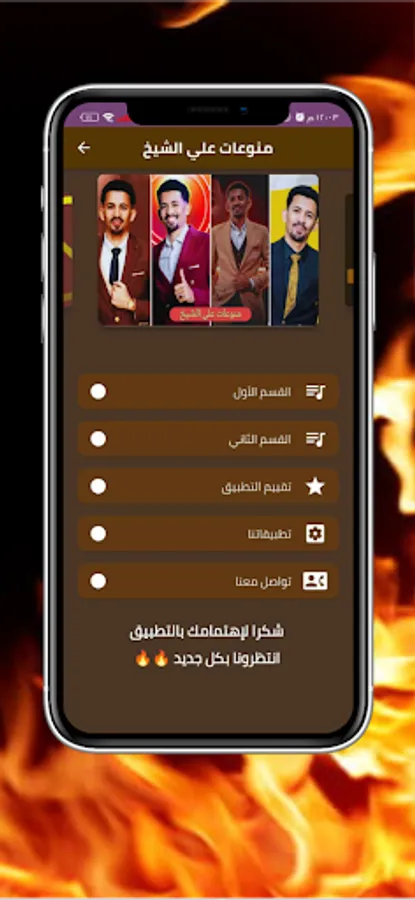 Ali Sheikh Hamasiyeh's shilat application allows you to hear new Ali Sheikh Hamasiyeh's shilat through your mobile phone or tablet through one program that contains Ali Sheikh's patriotic shilat for free as it is available on the store for Android phones. In order to listen to shilat Ali Sheikh mp3 and download, download shilat Ali Sheikh, and you will also find the words of shilat Ali Sheikh