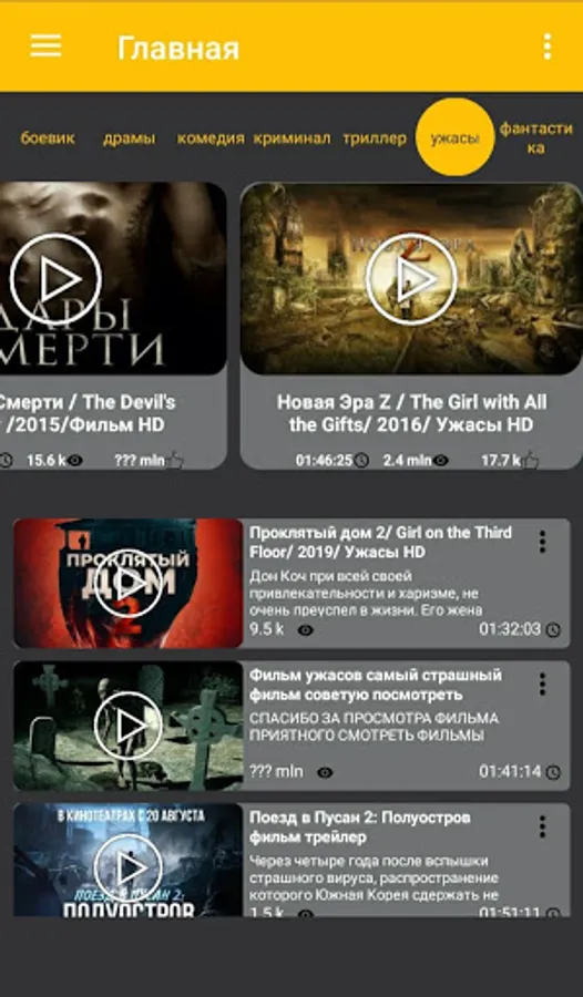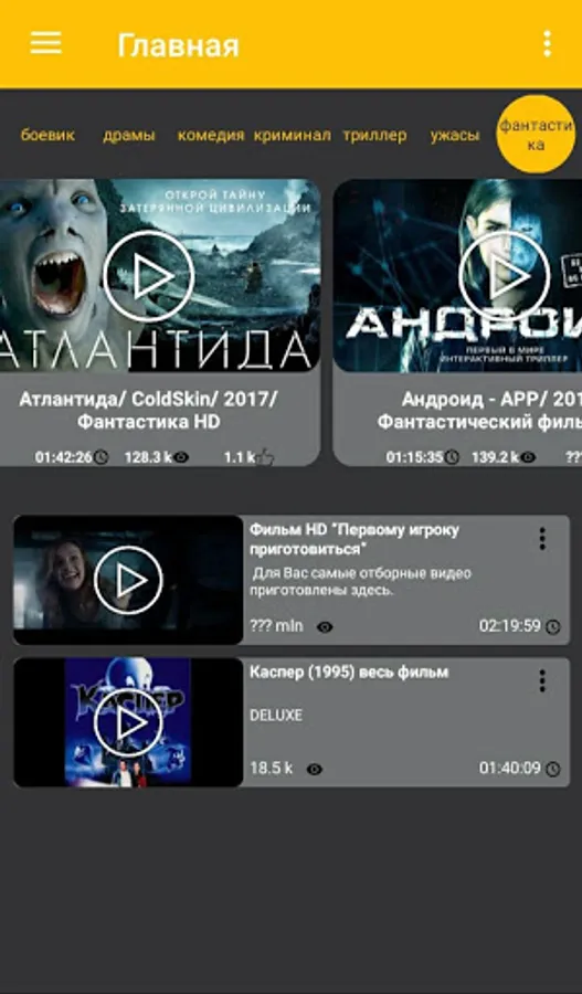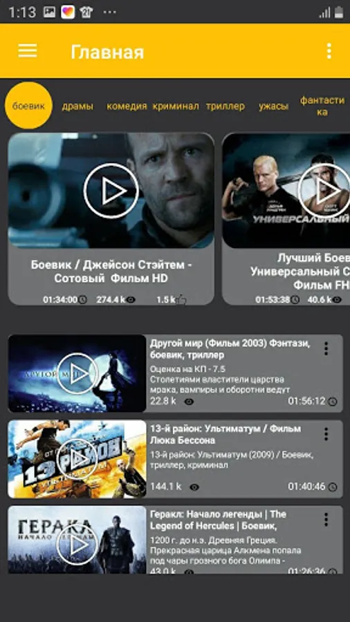 All films are divided by genre such as action, thrillers, horror, comedy etc. and a user-friendly interface for watching movies.