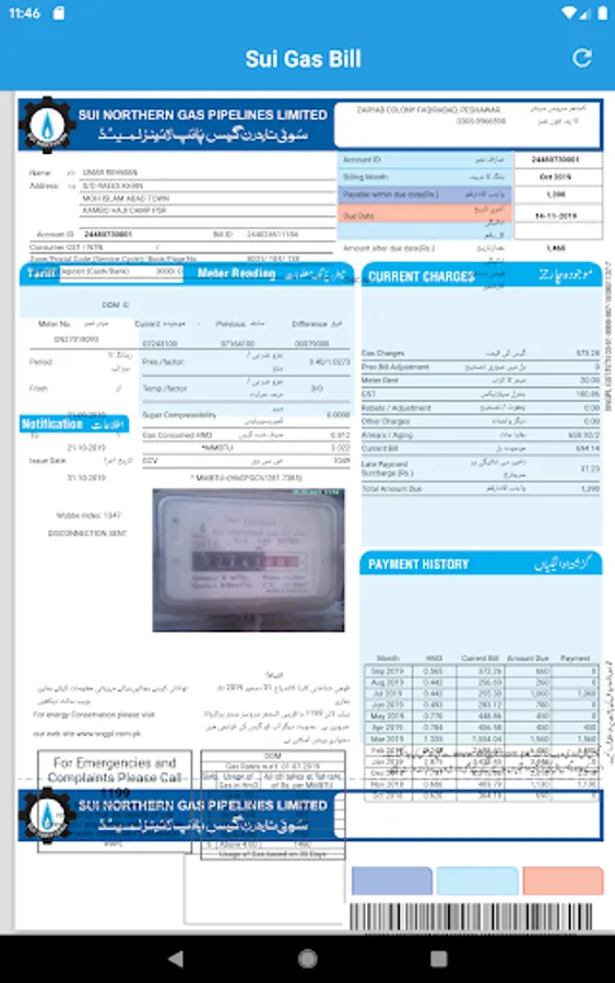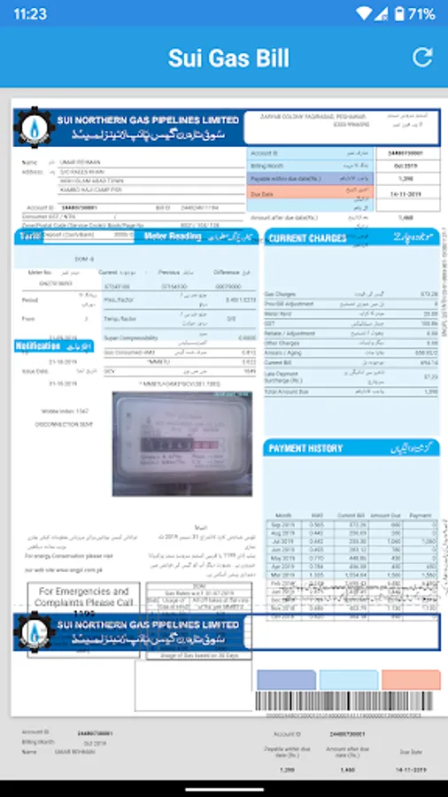 The online bill would provide you with all the details of your current bill as well as history of the gas bill.