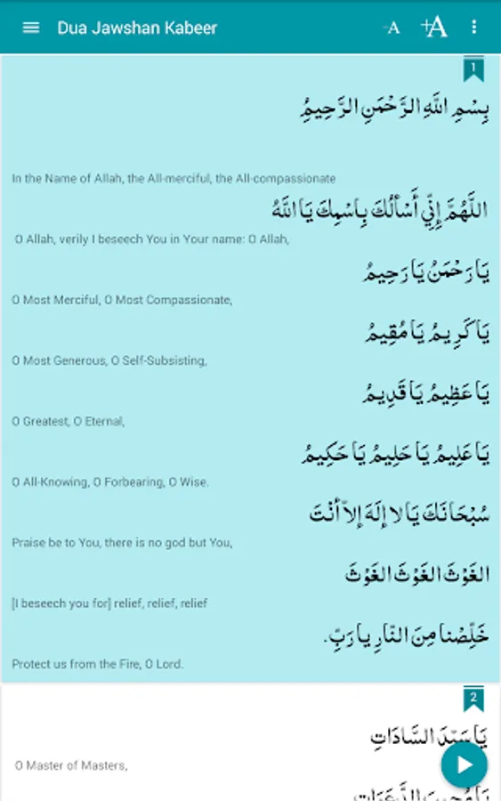 Imam `Ali ibn al-Husain Sayyid as-Sajjidin (prayers be upon him) related from his father from his grandfather the Prophet of Allah (blessings of Allah be upon him and his family) that this supplication was taught by the Angel Jibra’il (prayers be upon him) to the Prophet (blessings of Allah be upon him and his family) during one of the battles. Imam Husain ibn Ali (as) said, “My father Ali ibn Abi Talib (AS) had bequeathed to me that I should memorise and protect this supplication and write it on his Kafan (burial shroud) and that I should teach it to my family and encourage them to read it as it contains 1,000 names of Allah and within these names is the Greatest Name of Allah (Ism-e-Azam).