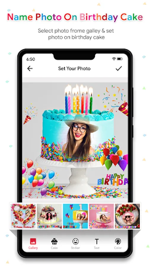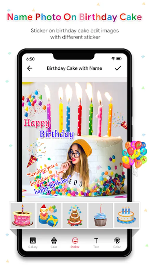 Wish your friends and family member's birthday cake with his/her name and photo on cake to make more realistic.