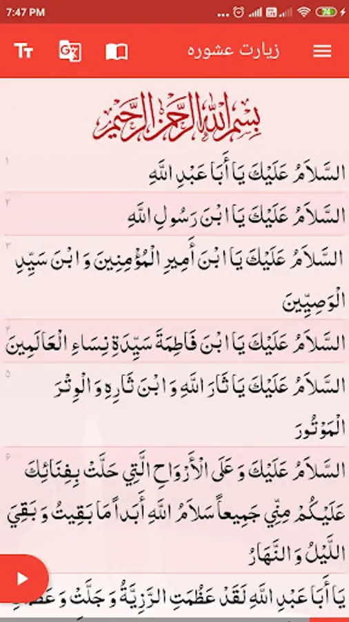 Ziarat Ashura is a very simple and easy to use application with sound.