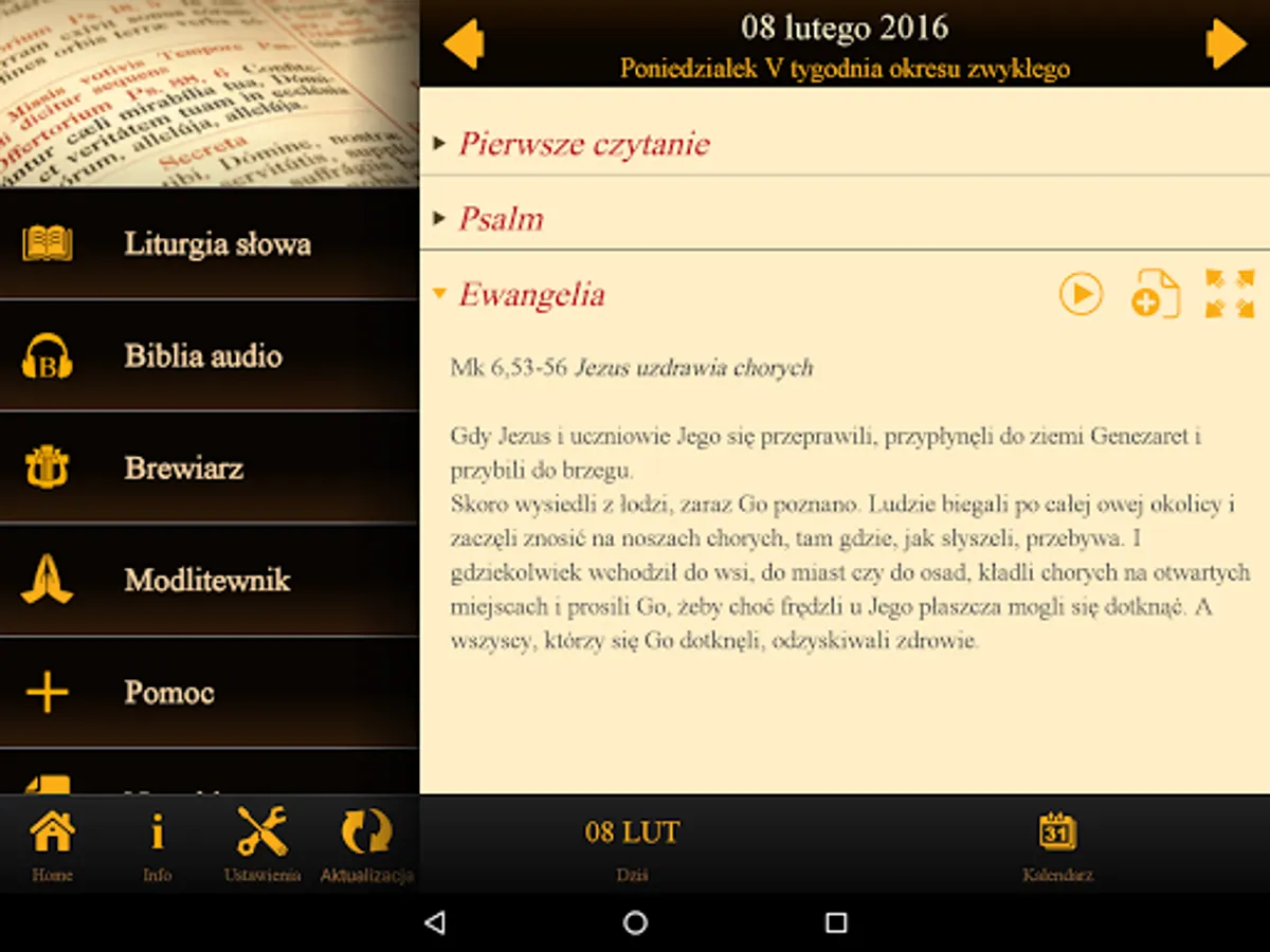 - Listening to the Scriptures through the search of Biblijni.pl;