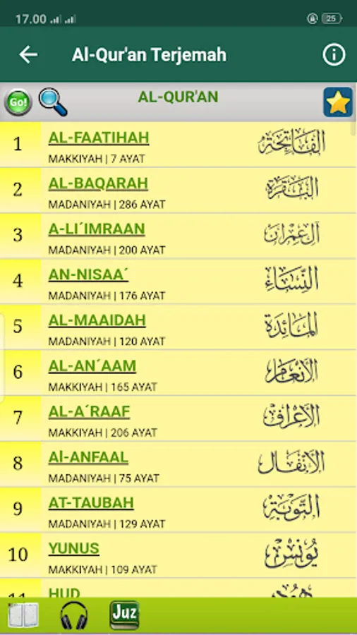 Al-Qur'an digital dengan terjemahan bahasa indonesia dan di dalam aplikasi Al-Qur'an ini tersedia murottal Al-Qur'an Mp3 Full Offline. di mulai dari surah alfatihah sampai surah annas atau 114 surah 30 juz full Offline.