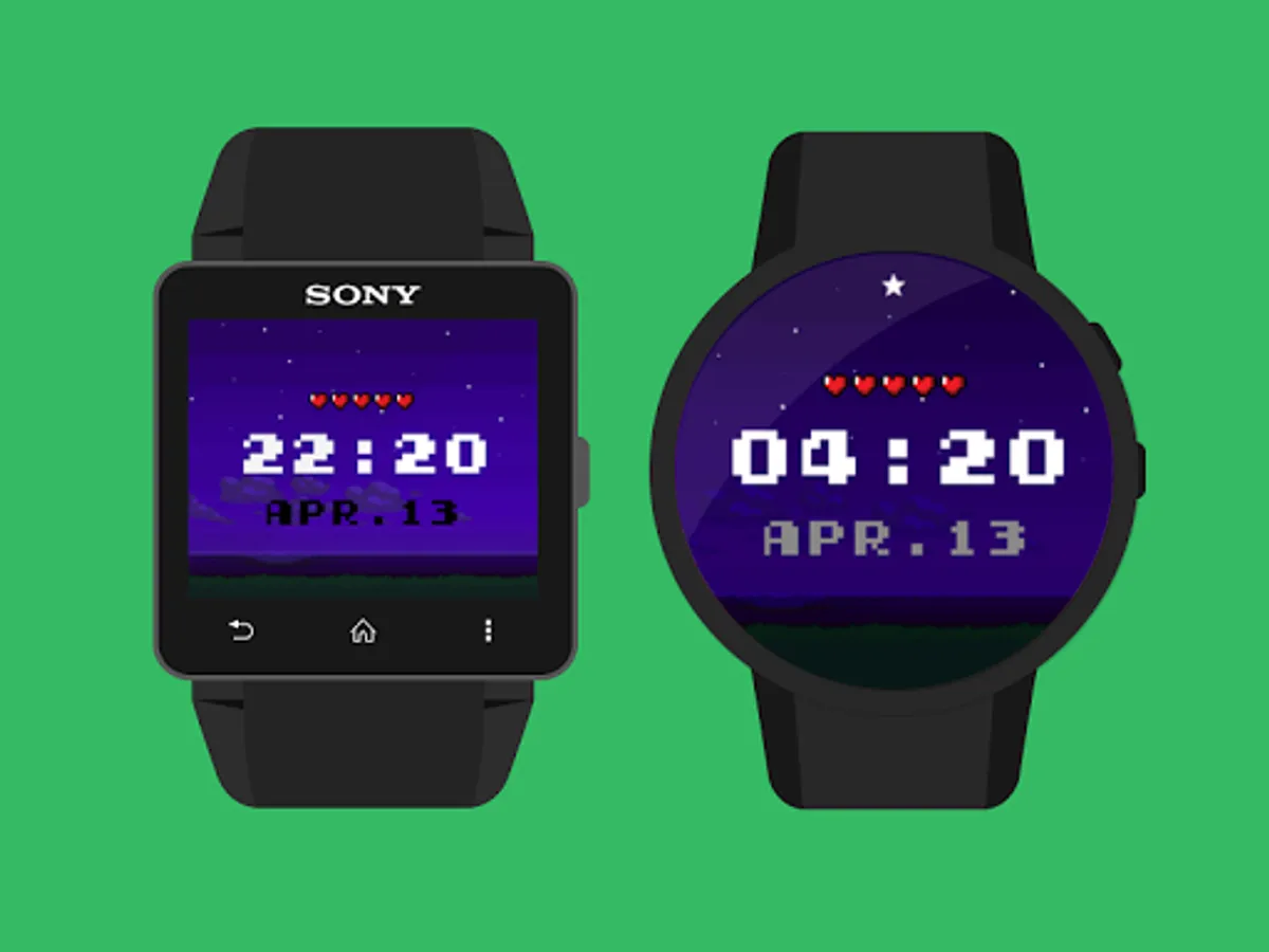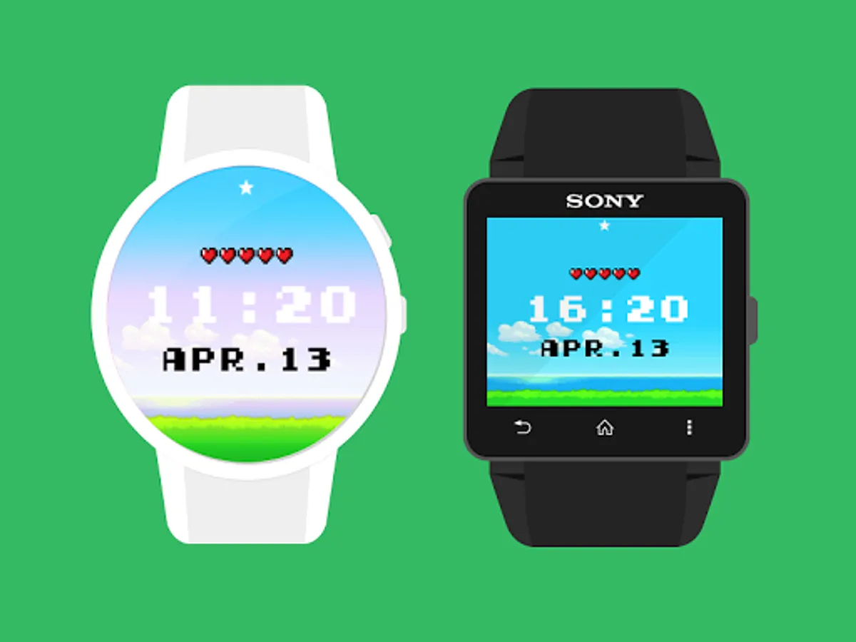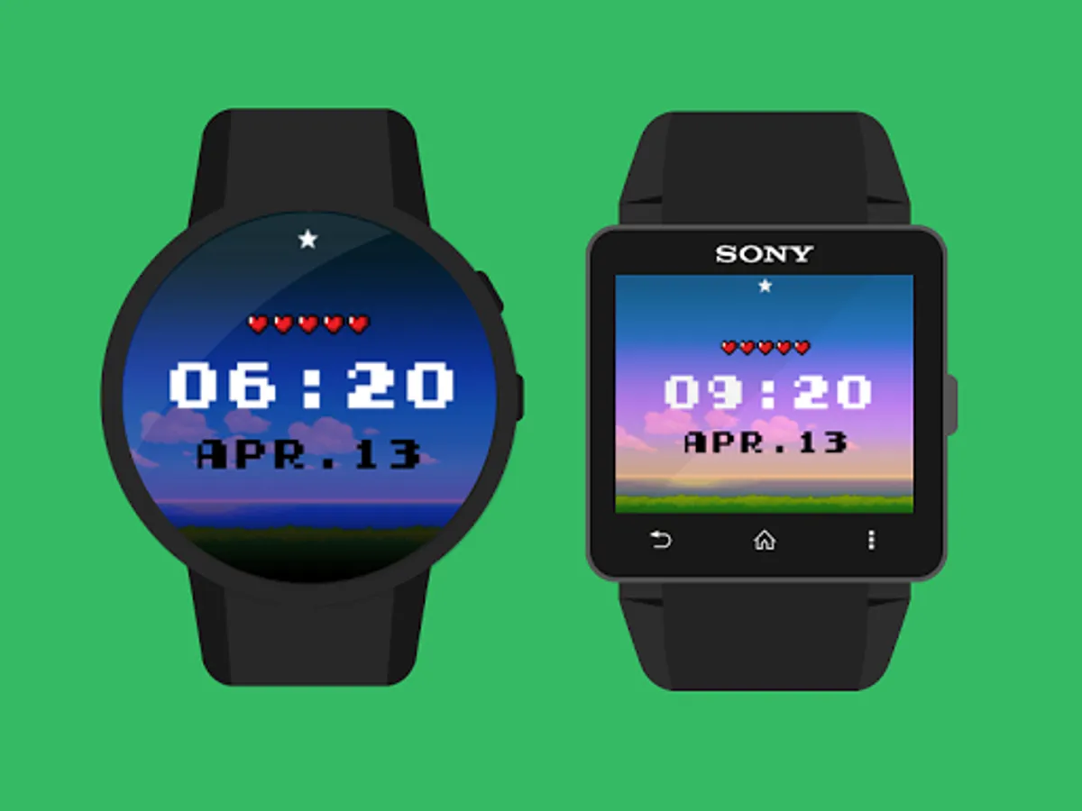First of it's kind available for Android wear. 8 Bit themed watch face.
